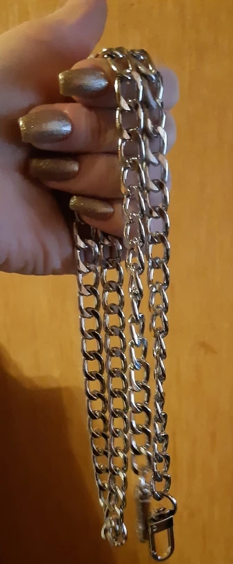 Отлично! Цепочка качественная, звенья сделаны хорошо, аккуратно, тяжелая, немного светловатая, но смотрится хорошо, с более дорогой фурнитурной сочетается как родная)) хорошие замочек крепления - очень довольна! Длину брала 120см, через плечо носить можно, если сумочка небольшая, если сумка больше 20см лучше наверно носить на плечо, иначе цепочка будет коротковата, стандарт ремешка для кроссбоди 140см, закажу ещё в золотом цвете, к покупке рекомендую 100%