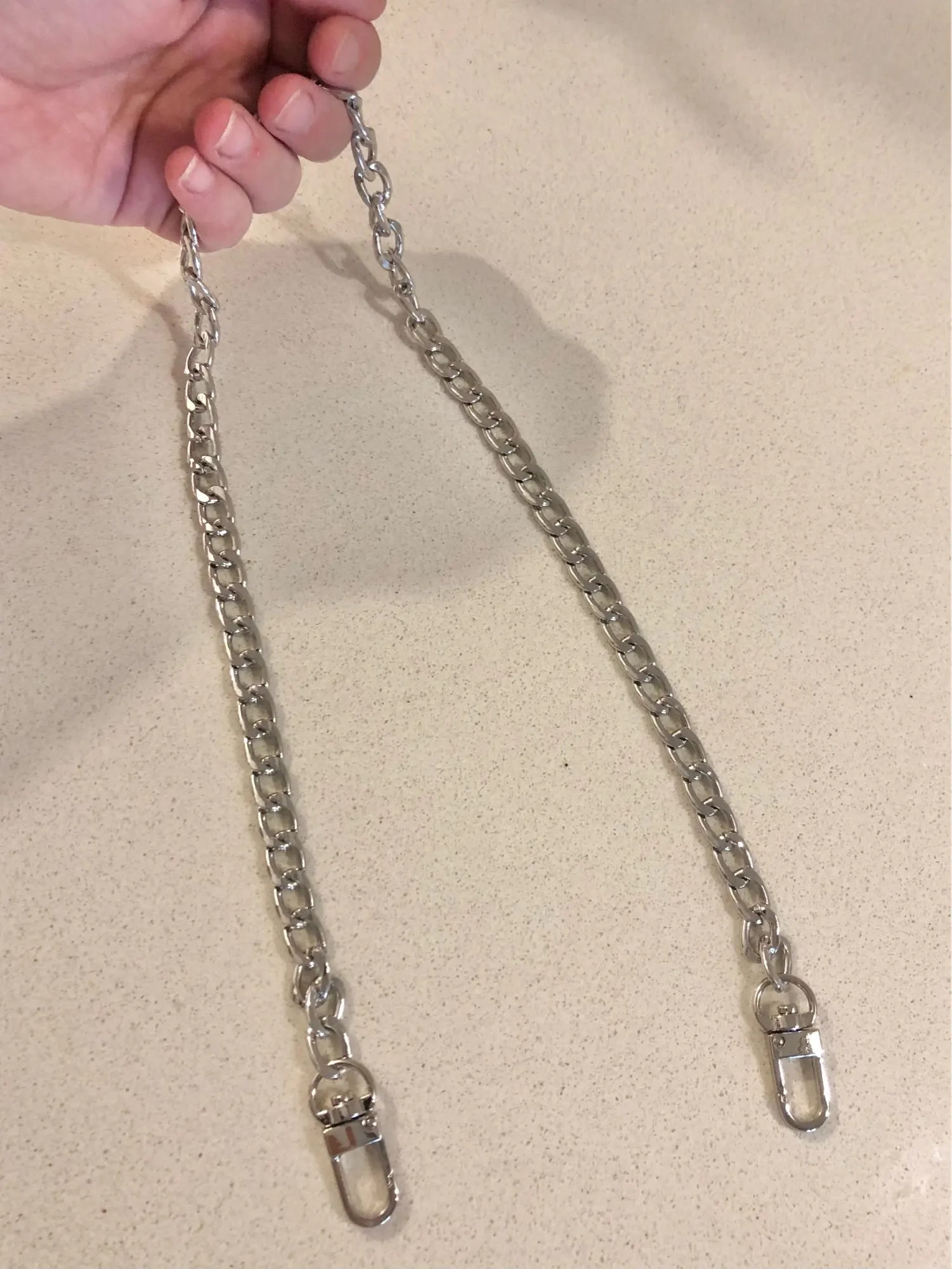 Спаибо продавцу за моментальную отправку. Качественная добротная цепочка, карабины очень крепкие.