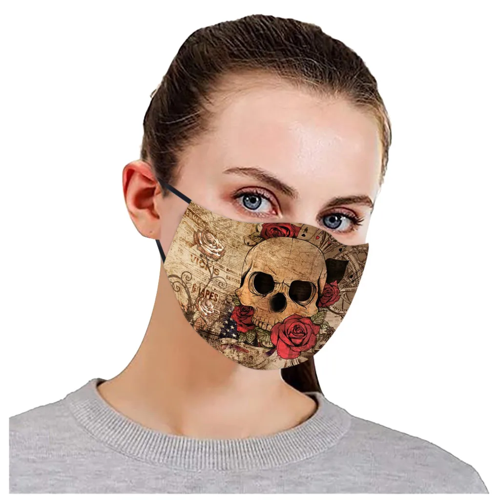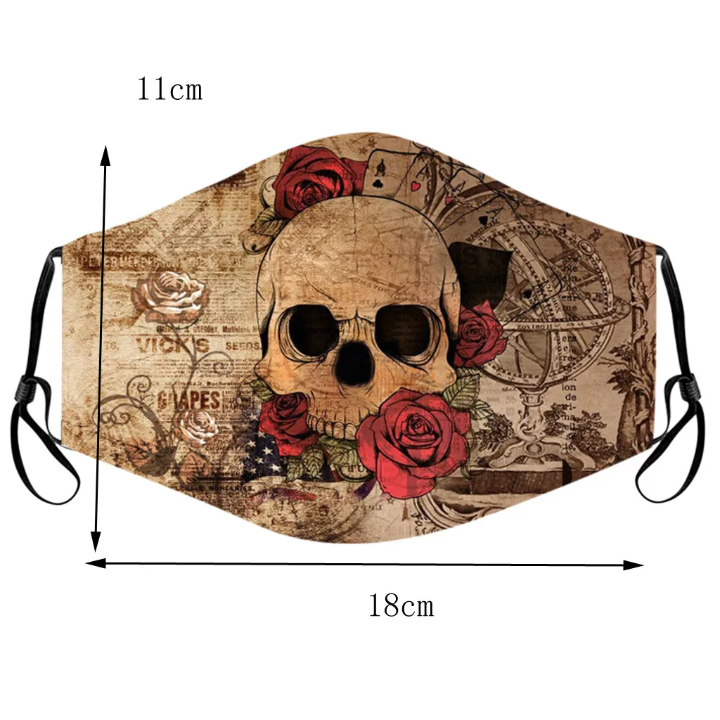 Маска для лица унисекс, с принтом черепа и розы, ветрозащитная, Пылезащитная, моющаяся, регулируемая