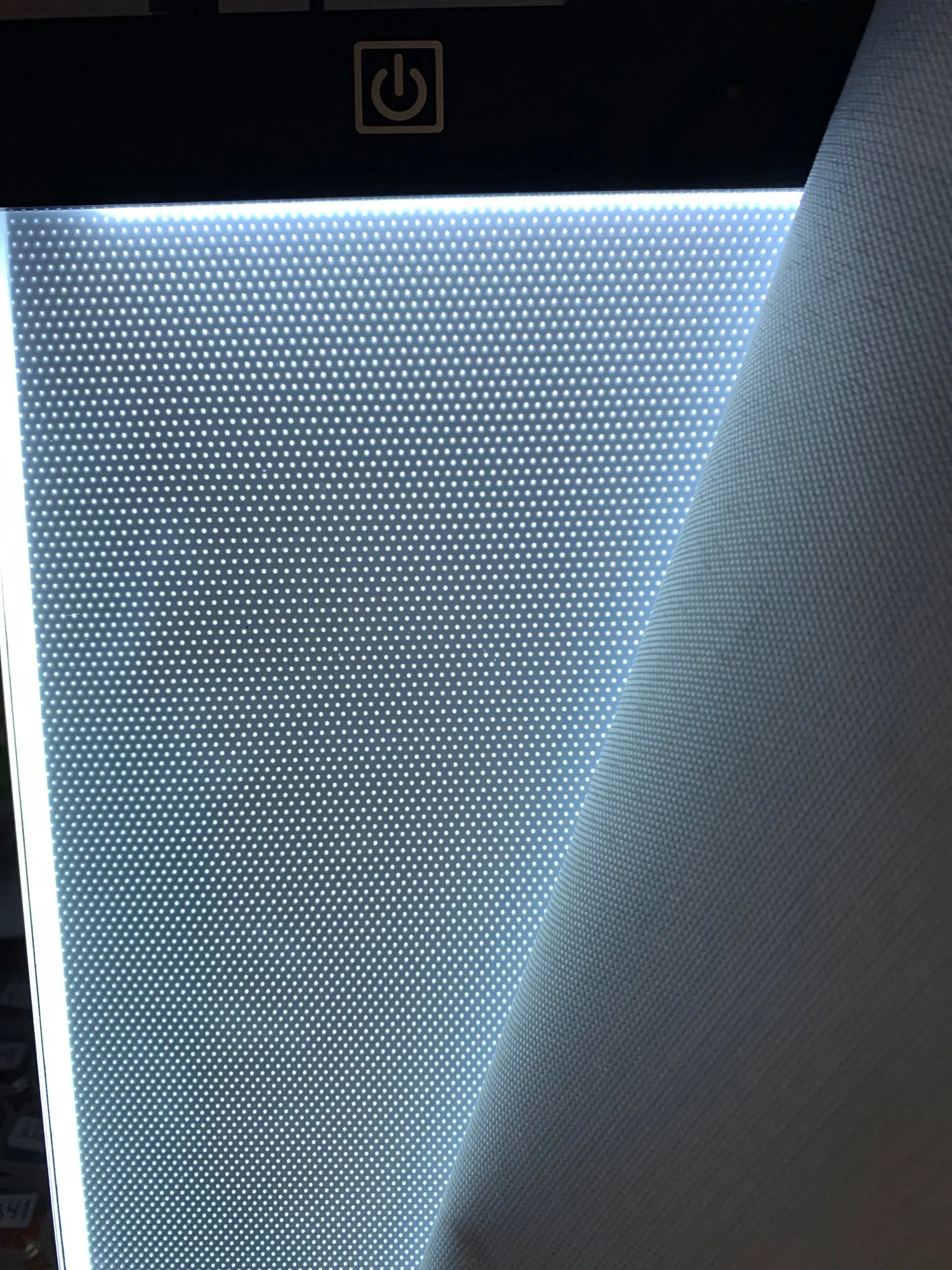 Продукт имеет сетку между источником света и поверхностью дисплея, которая препятствует правильному отображению.