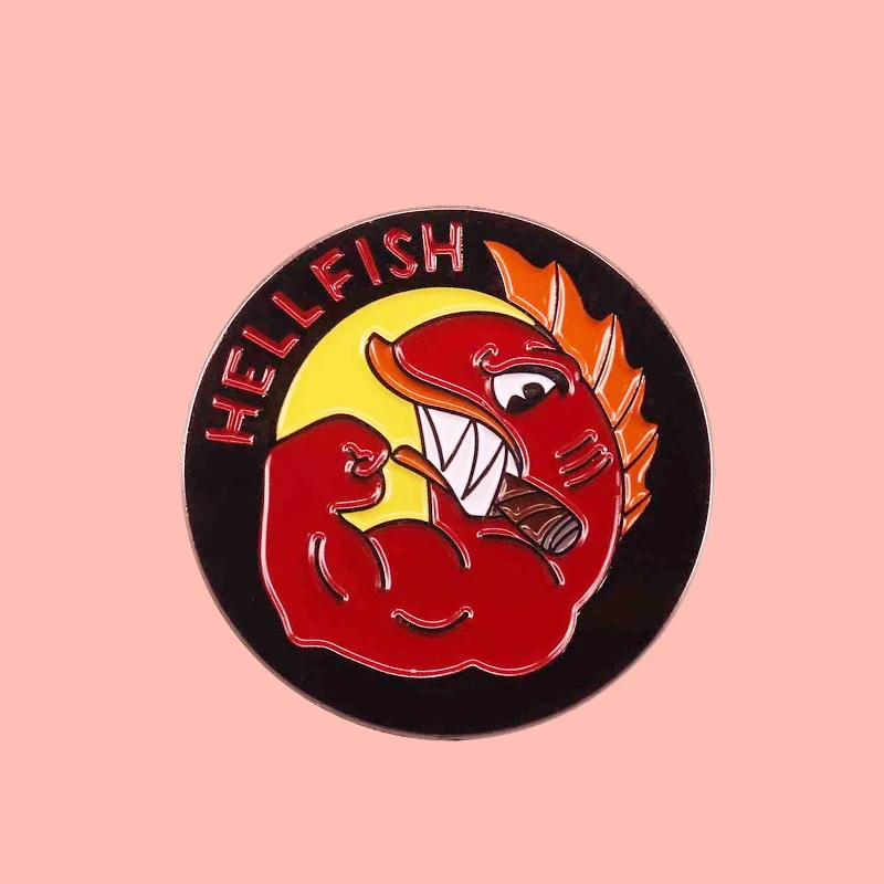 Эмалированная брошь в виде мультяшного аниме летающей рыбы Хелла, булавки, значки, булавки для лацканов, Модные металлические ювелирные изделия из сплава, аксессуары, подарки