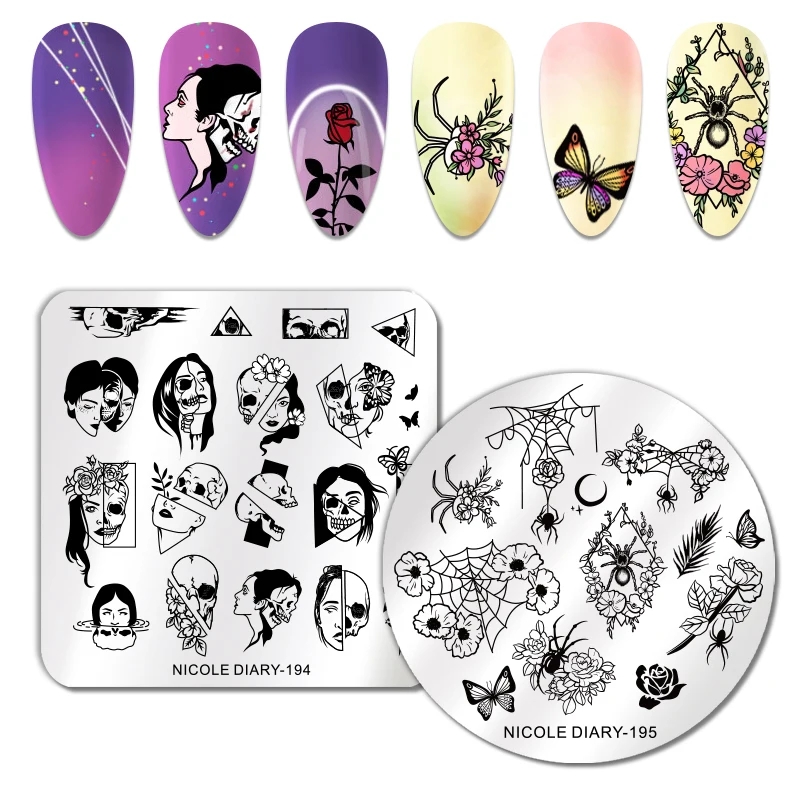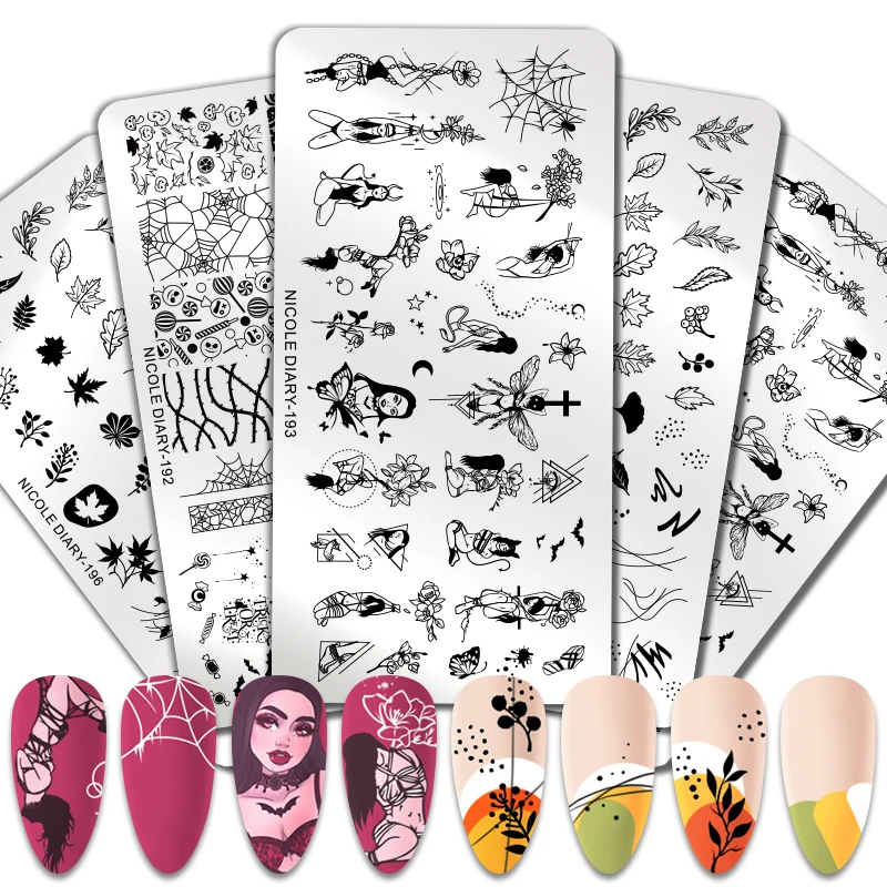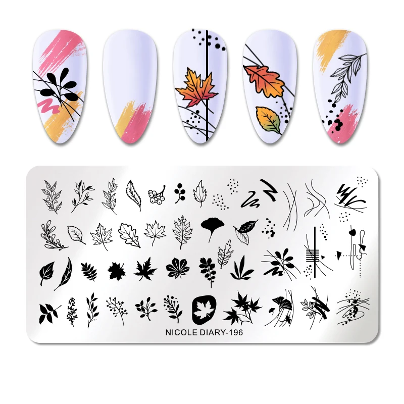 Николь дневник Рождество ногтей штамповки пластины Хэллоуин кленовые листья изображение штамп шаблоны Геометрическая Печать трафарет Инструменты