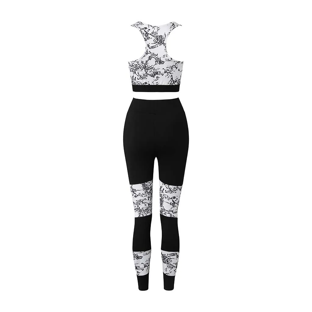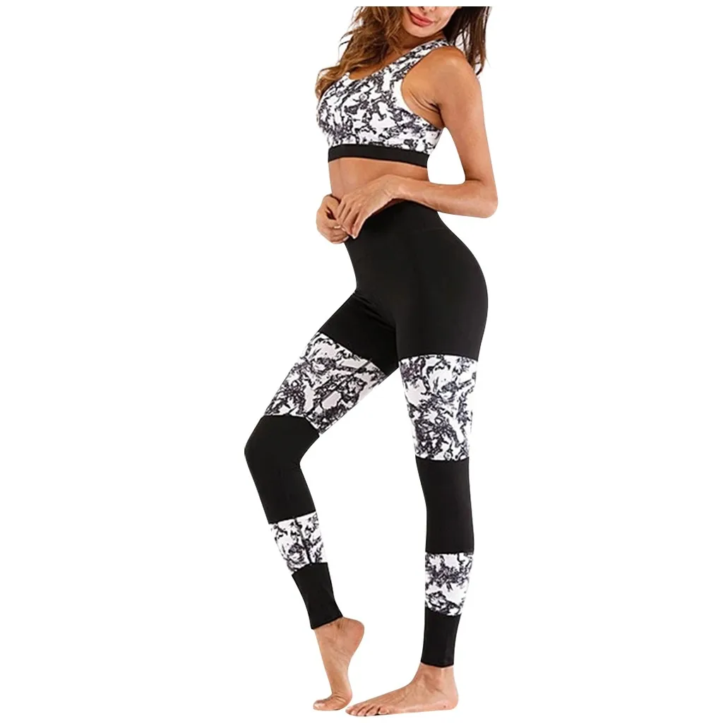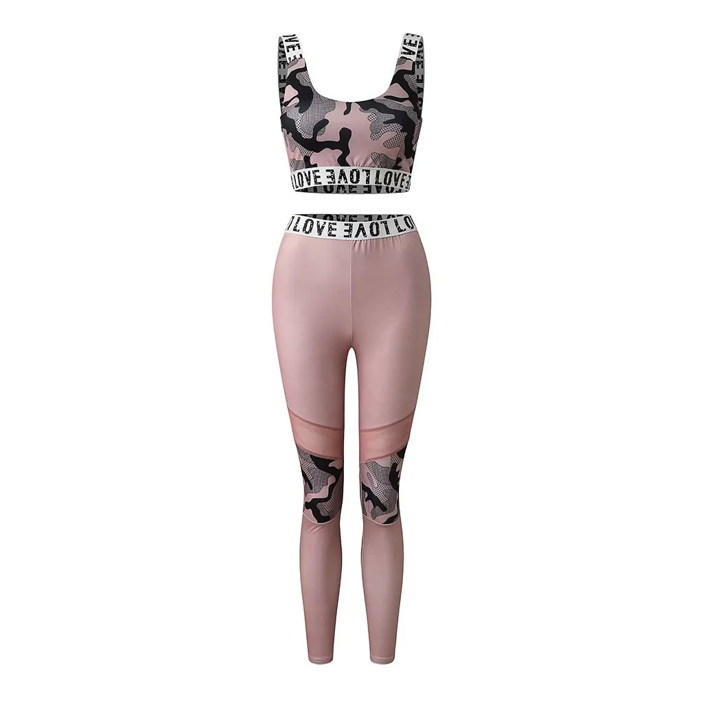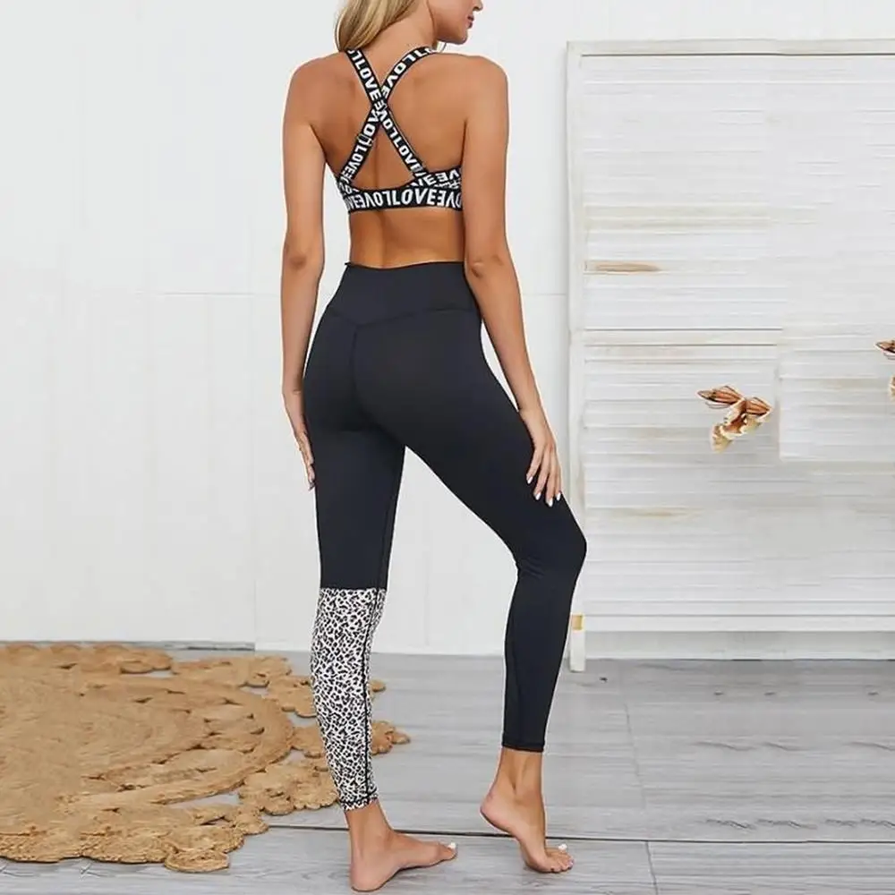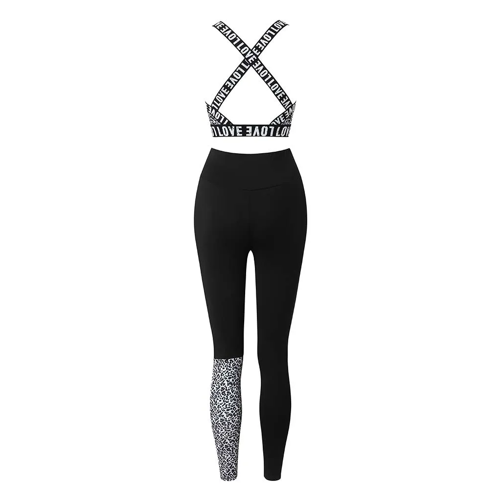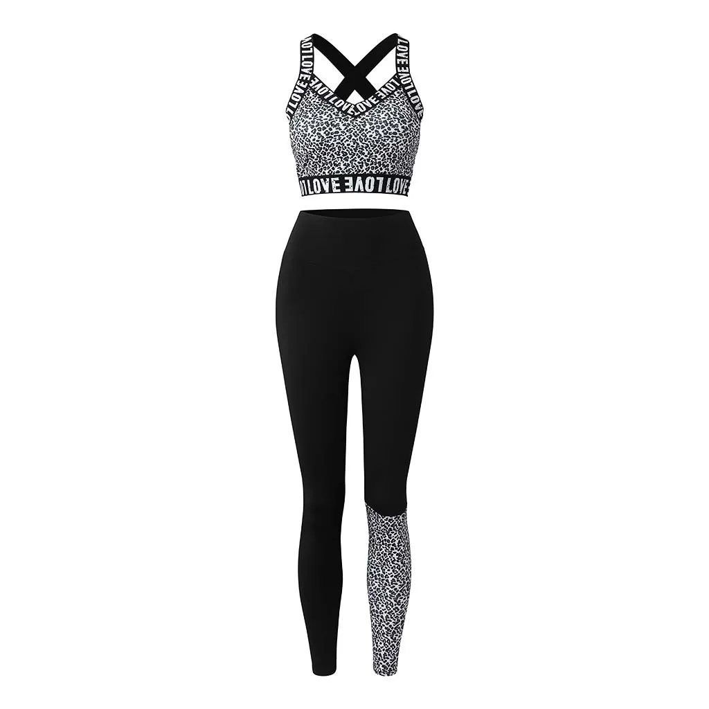 1 шт., блузка для фитнеса и йоги, брючный костюм с принтом Love, высокая талия, бедра, штаны для бега, с круглым вырезом, без рукавов, спортивная одежда