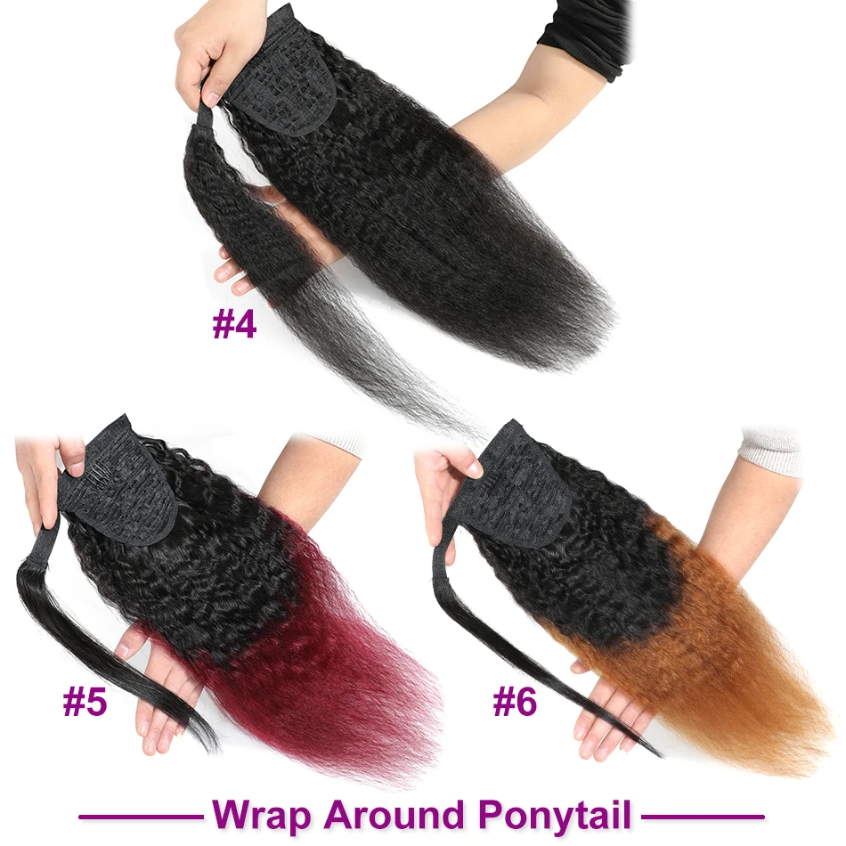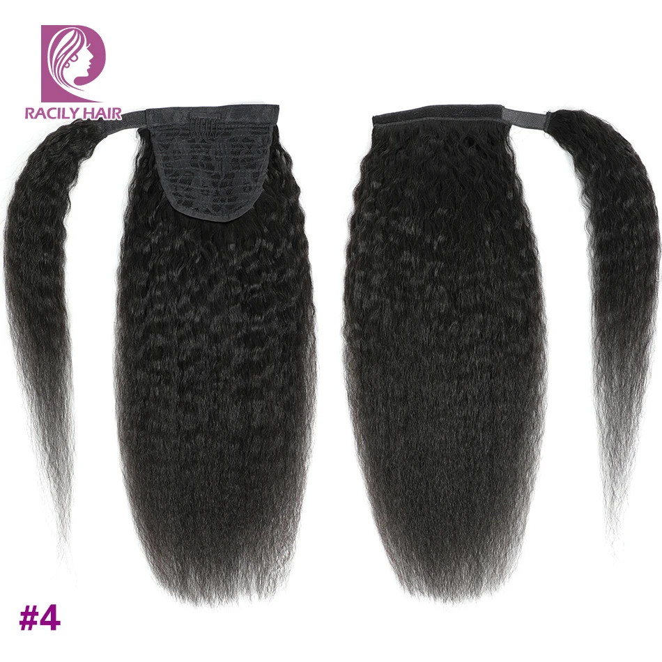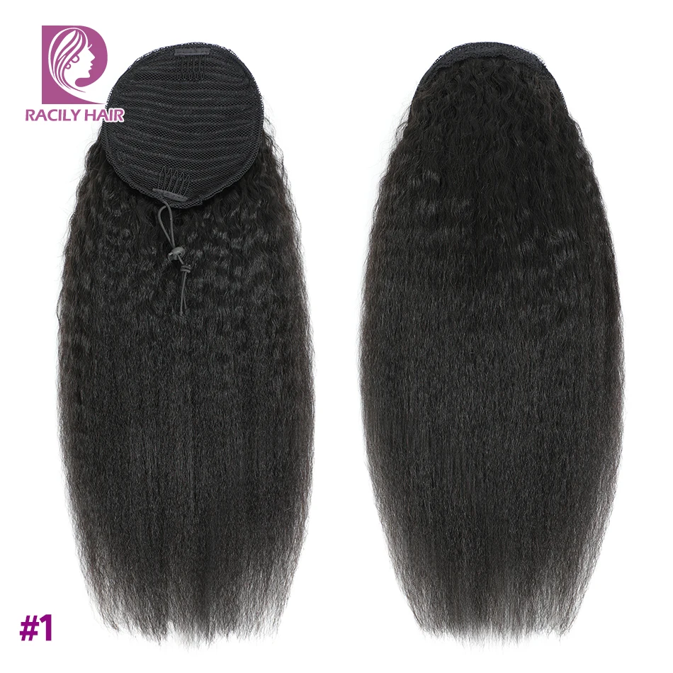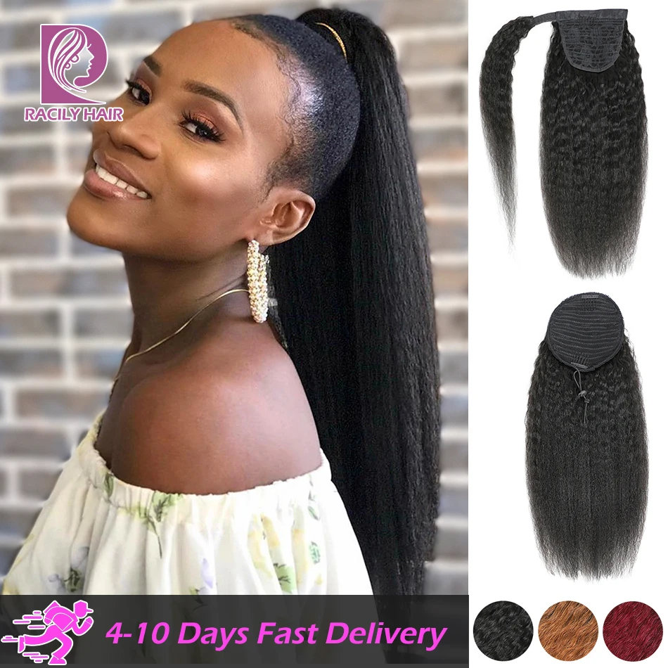 Racily волосы на шнурке конский хвост человеческие волосы для черных женщин Омбре обертывание вокруг бразильский кудрявый прямой конский хвост клип в расширение