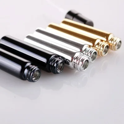 Стеклянный флакон с распылителем 20 шт.лот 5 мл, распылитель для духов с алюминиевой золотой черной крышкой, маленькие флаконы для образцов, тонкая стеклянная бутылка
