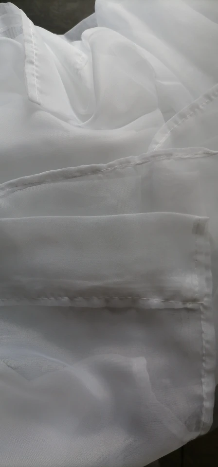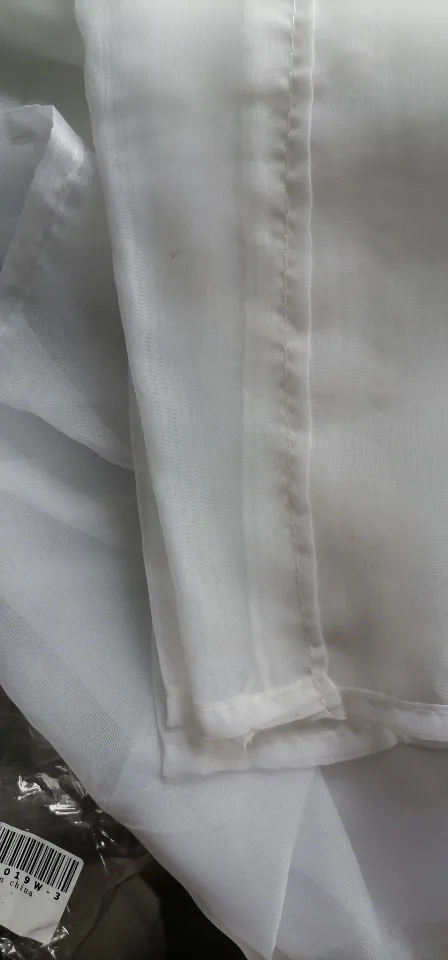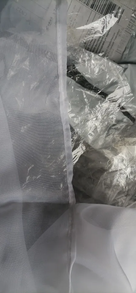 Пришли просто куски ткани подшитые со всех сторон. Хотя заказывала с люверсами (то есть с отверстиями, чтобы сразу можно было повесить). Сама ткань хорошая. Плюс обратите внимание, что в комплете идут сразу два отреза тюли. Потому что заказала две штуки, а пришло четыре отреза.