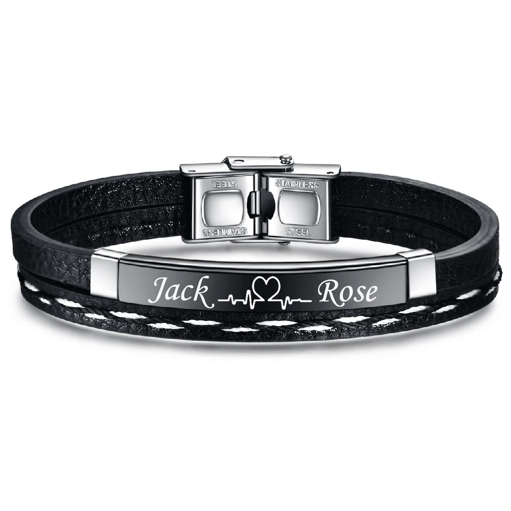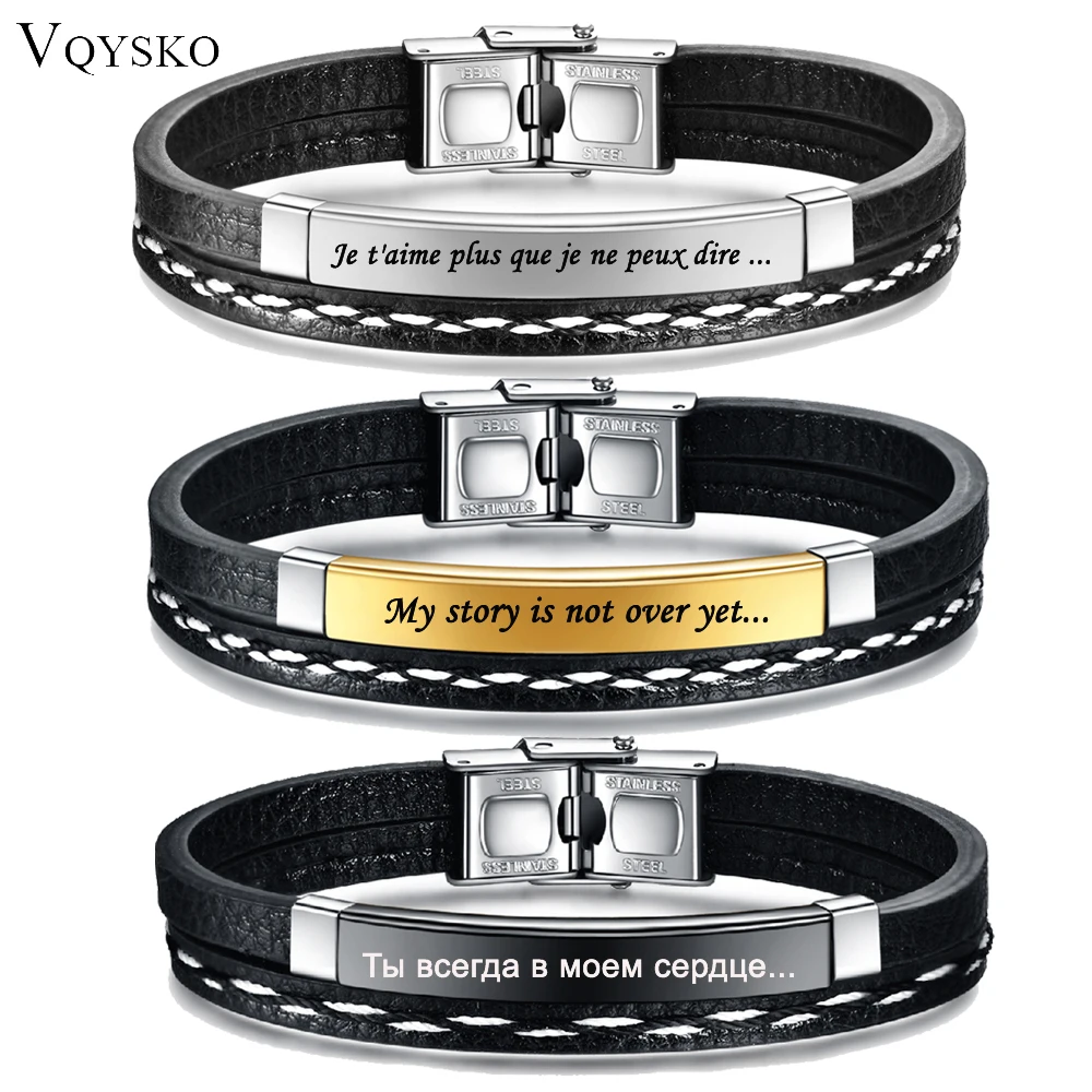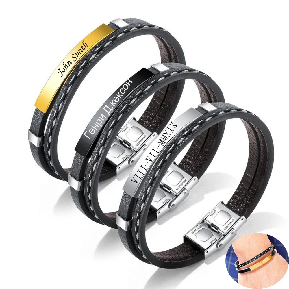 Кожаные браслеты на заказ для мужчин, женщин, с именем, с гравировкой логотипа, из нержавеющей стали, повседневные, персонализированные ювелирные изделия