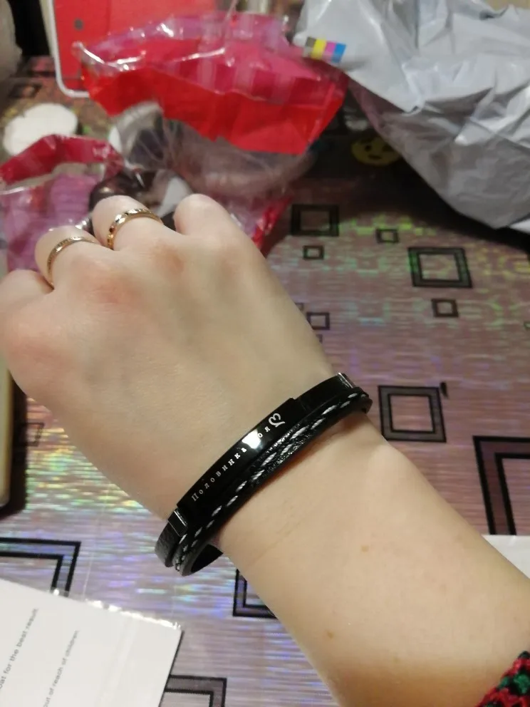 Отличный браслет! Прибыл быстро, дней за 10 в лен. Область. Написали всё как я и хотела! Но шрифт просто печатный, а я специально выбирала товар, где можно было выбрать шрифт. Хотела, чтобы письменно и фигурно написали. Но и так тоже чудесно!