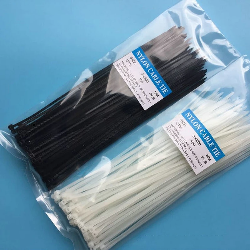 100 шт., самоблокирующиеся пластиковые нейлоновые кабельные стяжки ...