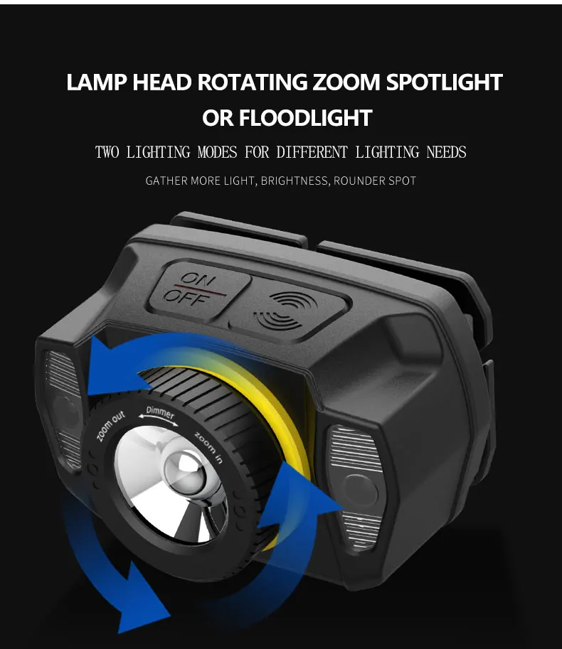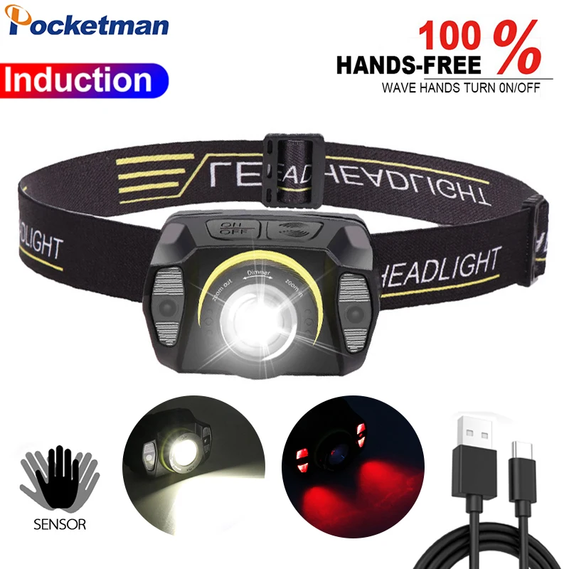Индукционный светодиодный налобный фонарь с usb-зарядным датчиком, налобный фонарь с масштабируемой головкой, водонепроницаемый налобный фонарь со встроенным аккумулятором