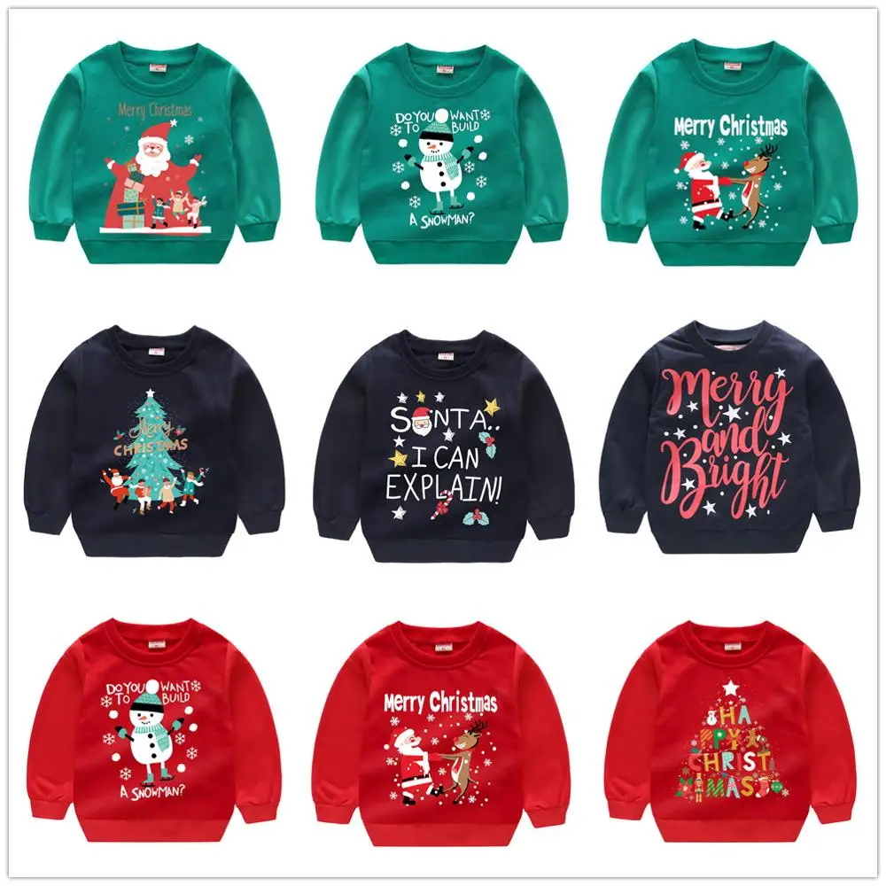 Рождественская одежда для детей свитшоты для мальчиков детские футболки со снеговиком свитера для маленьких мальчиков джемперы с Санта-Клаусом для девочек, красного и зеленого цвета, на возраст от 1 года до 5 лет