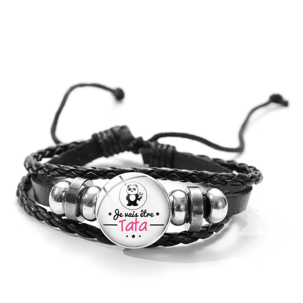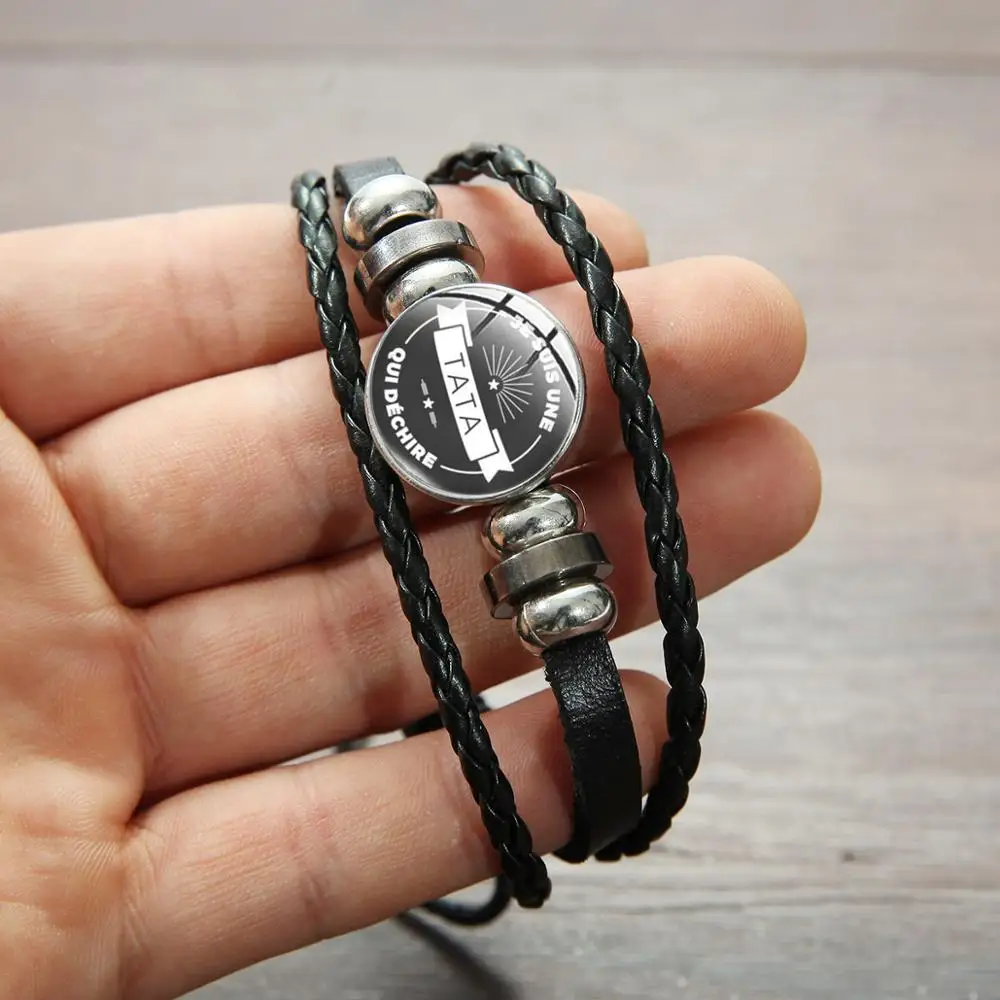 Милый браслет Je t'aime Tata с французскими буквами, узоры из стекла, кабошон, плетеный Многослойный кожаный браслет, подарок для тети, браслет