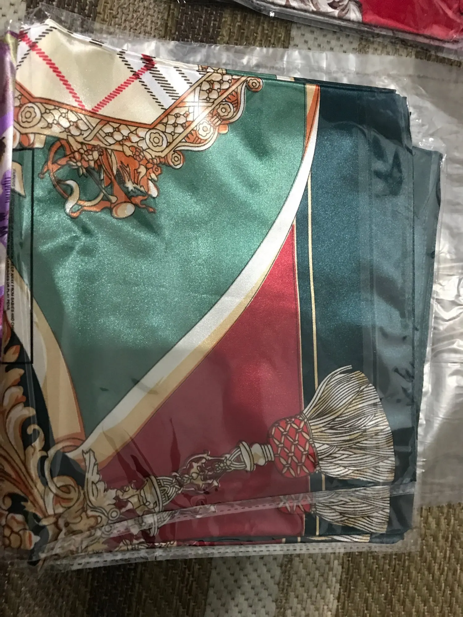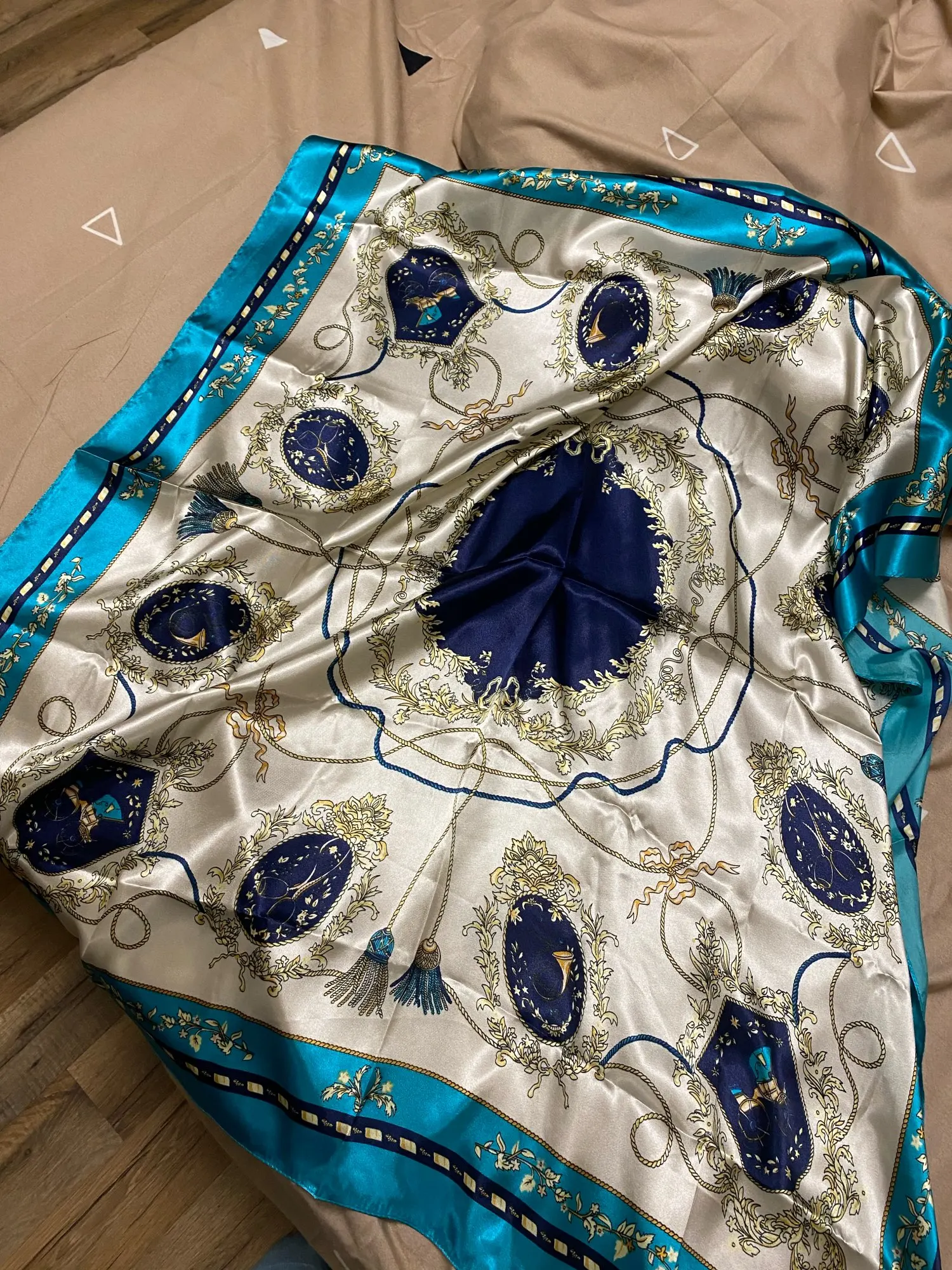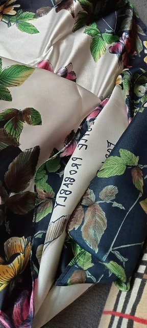 Прислали абсолютно не тот платок, да ещё и размер маленький 70*70, а должен быть 90*90. Спор не выиграла, хотя нарушение по 2м параметрам, деньги не вернули соответственно, я разочарована. Не выкидывайте упаковку, пока не распакуйте и не убедитесь, что пришёл именно то, что заказали.