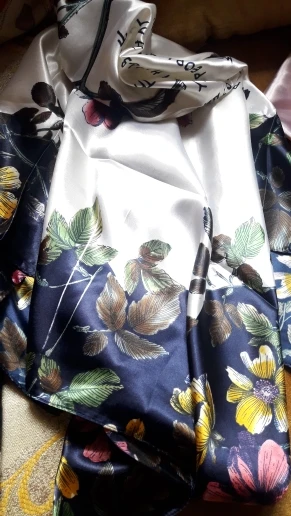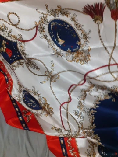 Платок - супер! Всё замечательно! Конечно, синтетика, но не хуже, чем шёлковый. К телу ОЧЕНЬ ПРИЯТНЫЙ! Буду заказывать ещё.