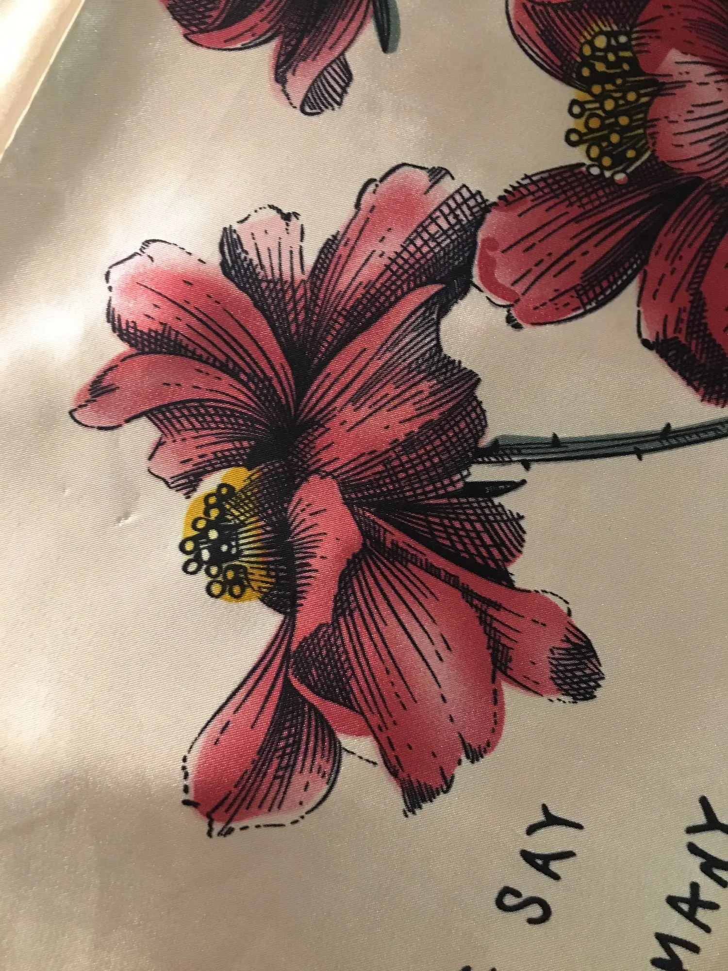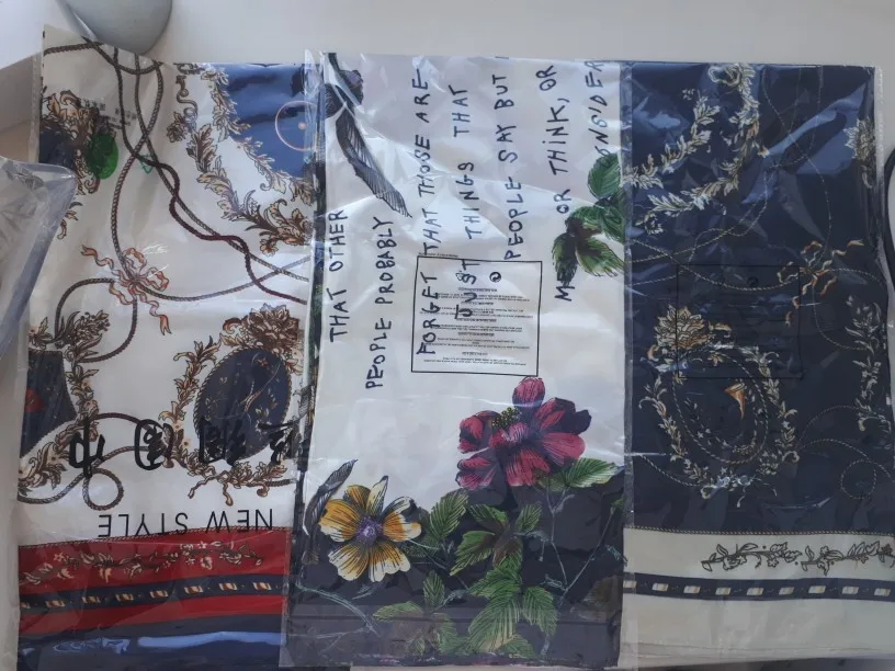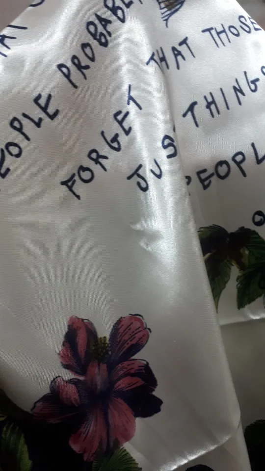 Было бы лучше, если бы у него не было английских слов, два из которых прописаны и были очень плохим почерком. На положительной стороне материал красивый, как и принт с цветами.