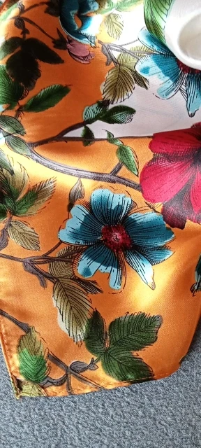 Красивые шёлковые платки,мне расцветки понравились,брала маме,она ещё не видела,но думаю,что понравятся . Точно как на фото,