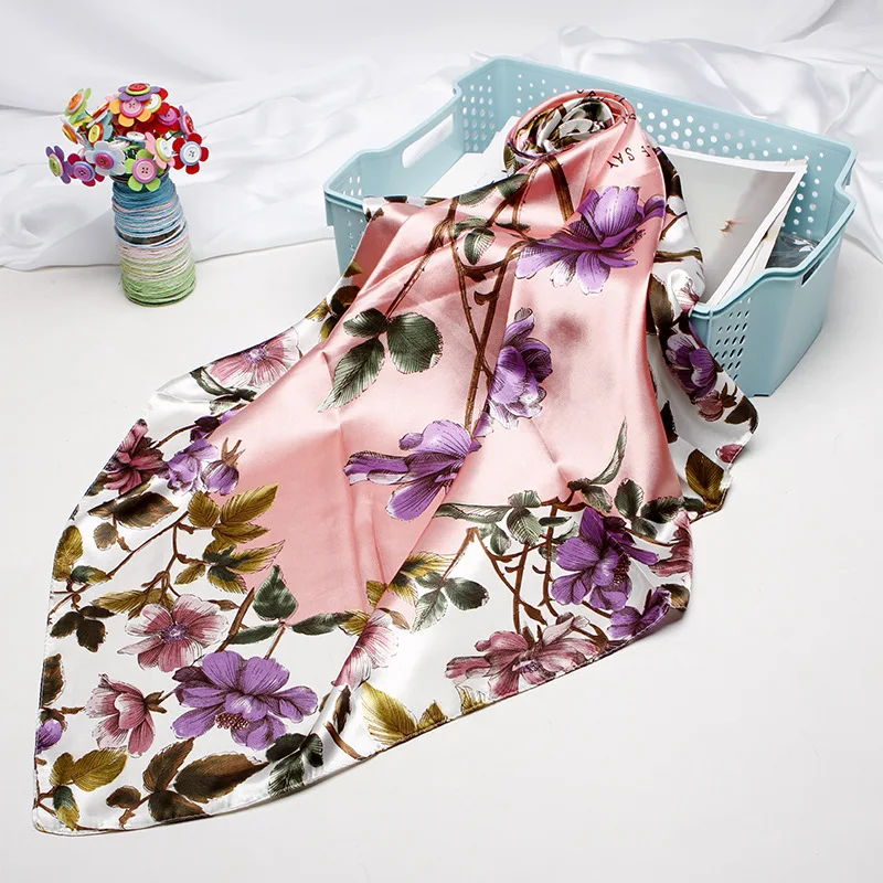 Платок женский Шелковый, с атласным принтом, 90 х90 см, 2022