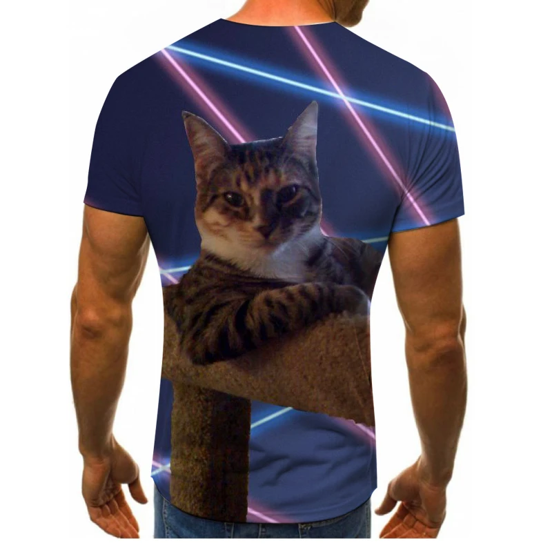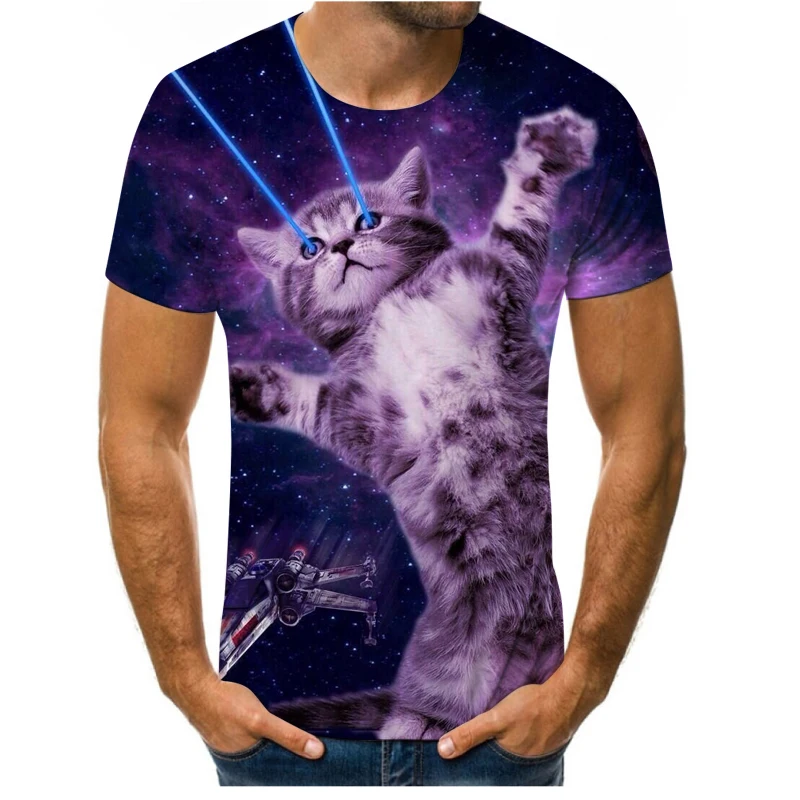 Модные летние футболки для мужчин и женщин в новом стиле с 3D принтом кошки, парные рубашки с круглым вырезом на заказ, повседневная мужская уличная одежда