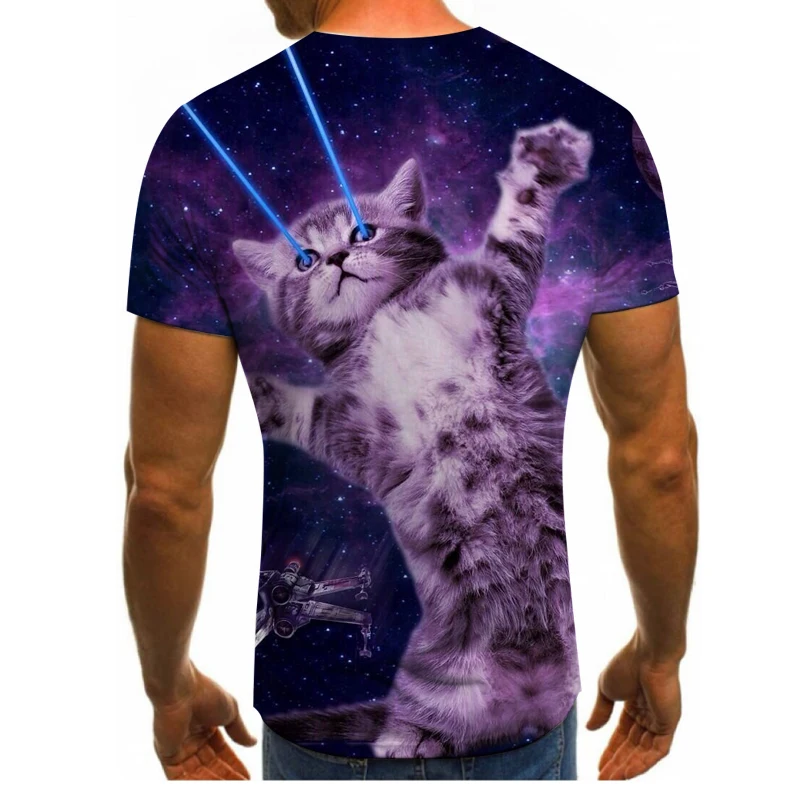 2020 новая Галактика Космос 3D футболка милая маленькая кошка ест Т...
