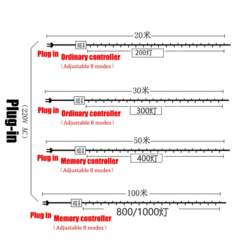 LED Quantity20M 200Leds / 30M 300Leds /50M 400Leds/100M 800leds /100M 1000