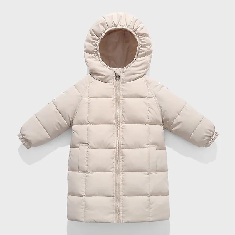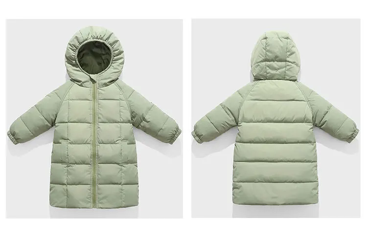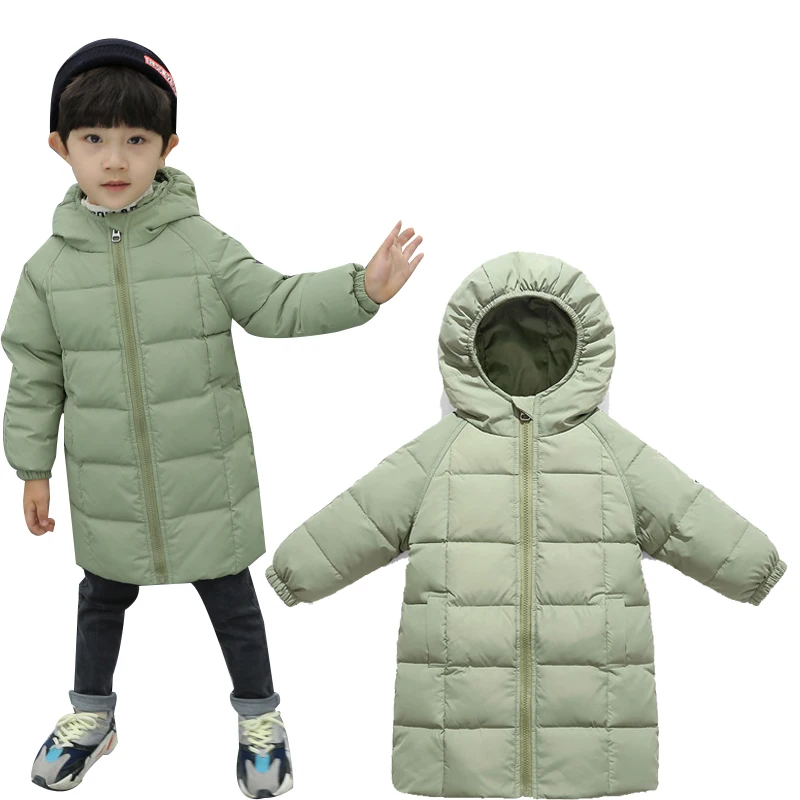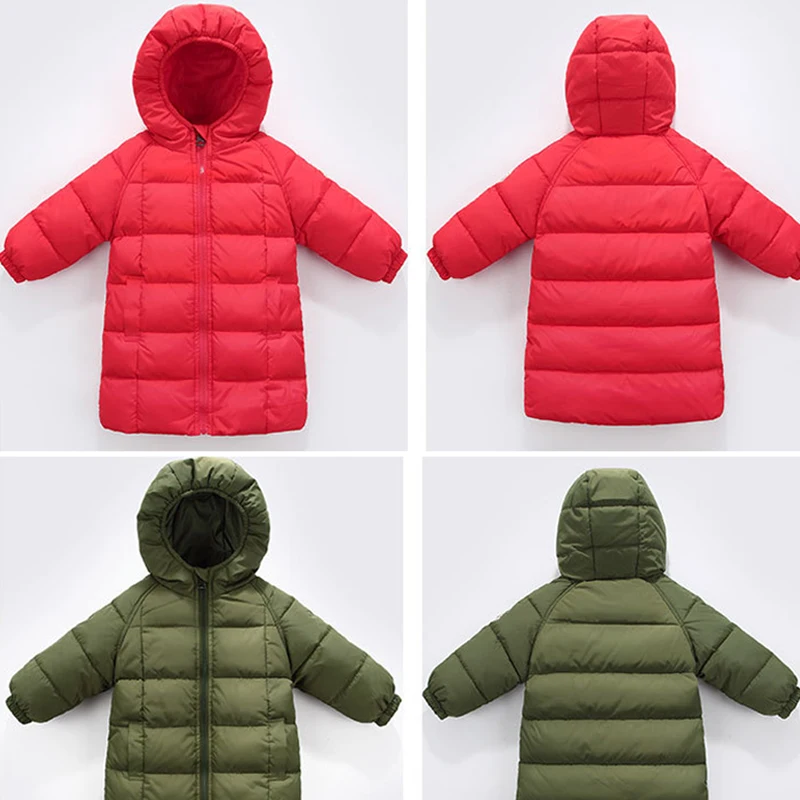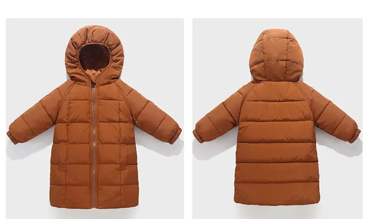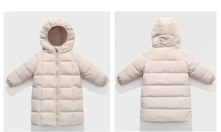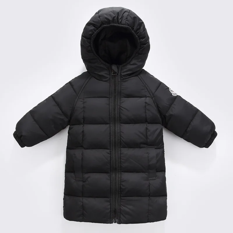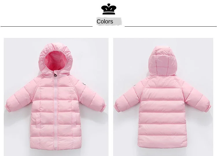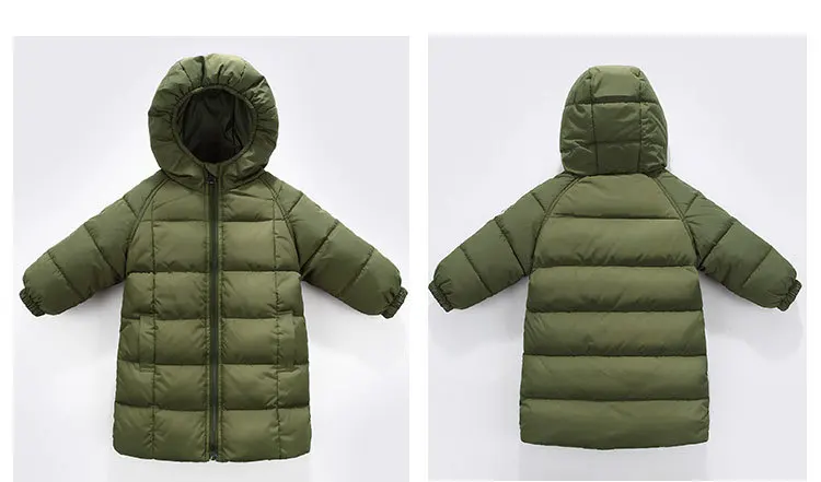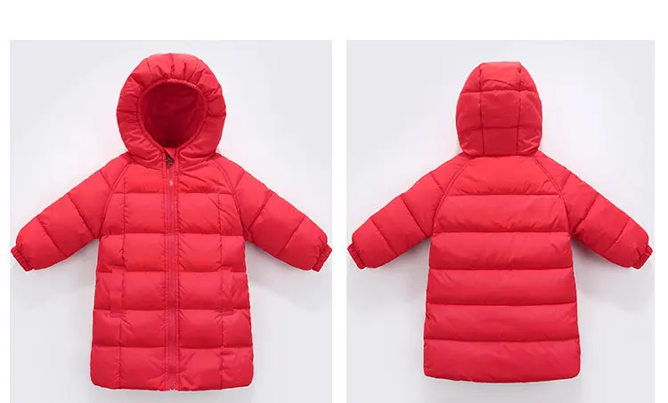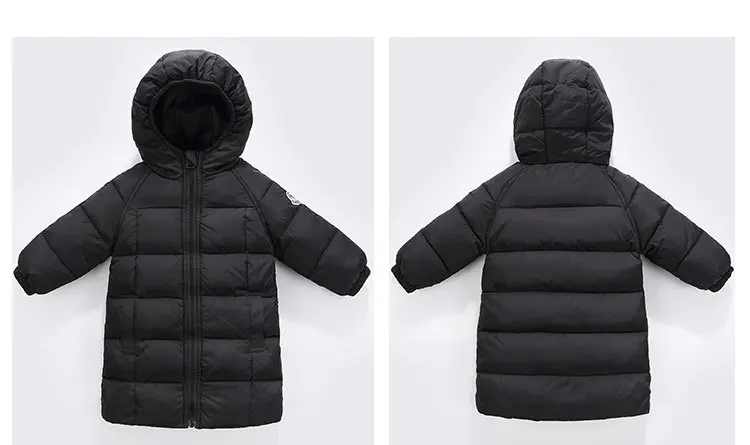Длинная зимняя одежда для маленьких девочек, детские толстые теплые куртки на 80% белом утином пуху для девочек, модная пуховая куртка с капюшоном, верхняя одежда