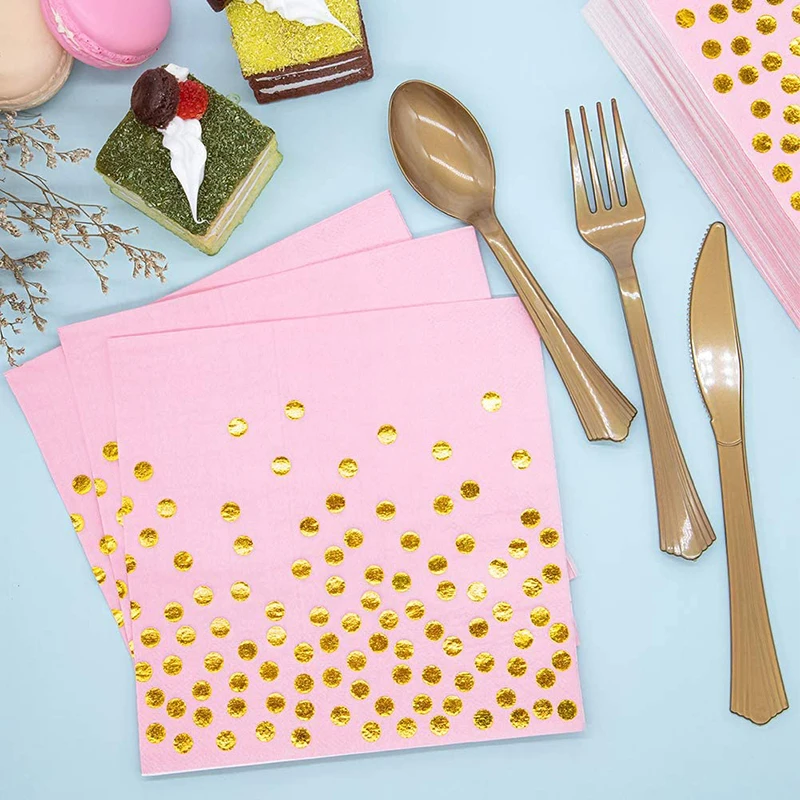 Одноразовая посуда в розовый Золотой горошек для маленьких девочек, украшение для дня рождения, вечеринки, детские бумажные салфетки, декор для 1-го дня рождения, вечеринки