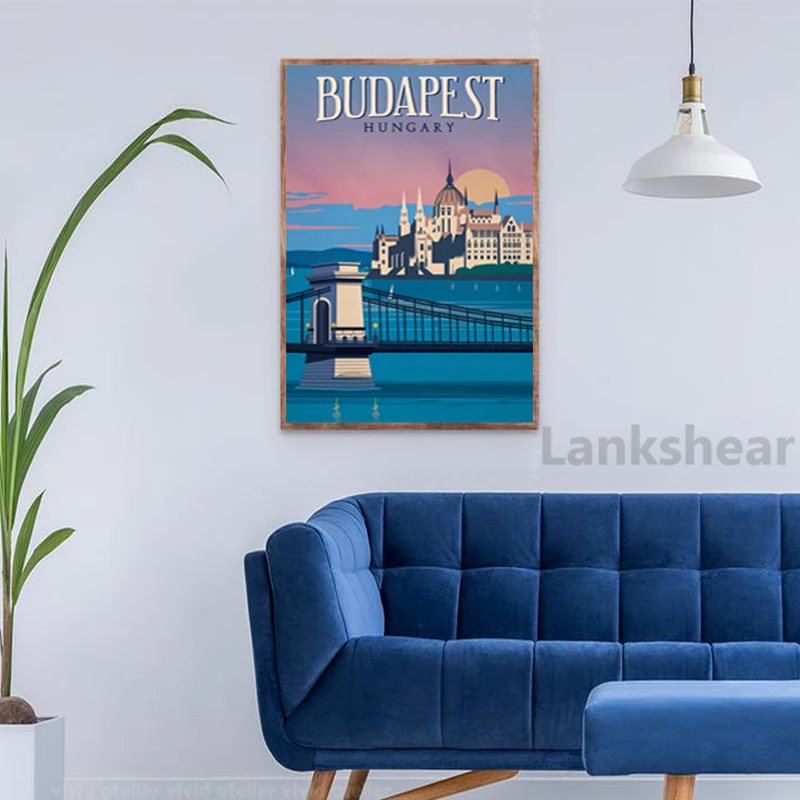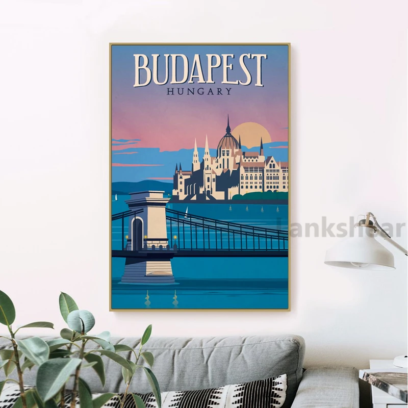 Постер для путешествий в Будапеште, Настенный декор на холсте, винт...