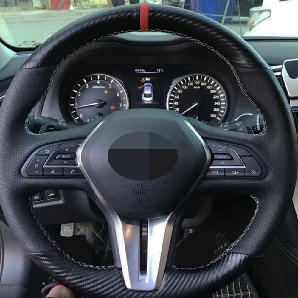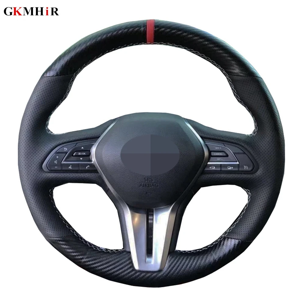 Пленка из углеродного волокна для Infiniti Q50, чехол рулевого колеса автомобиля, 2018, 2019, Q60, 2020-2016, QX50, 2020-2018, черная, 2020