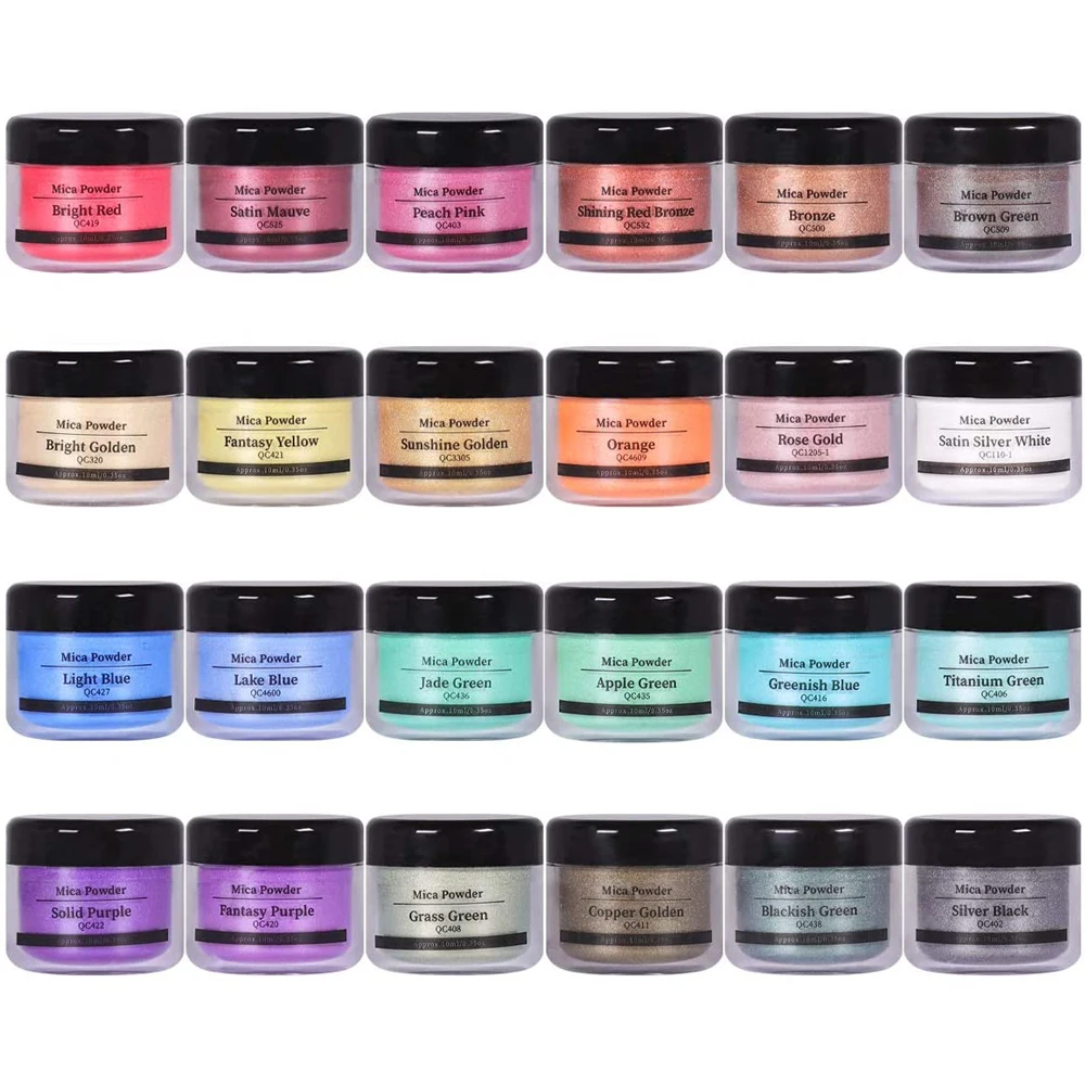 Натуральная слюдяная пудра, 24 цвета, для изготовления мыла ручной работы, блестящая жемчужная пудра, эпоксидная смола, пигмент для дизайна ногтейтеней для век, поделокблеска для губ