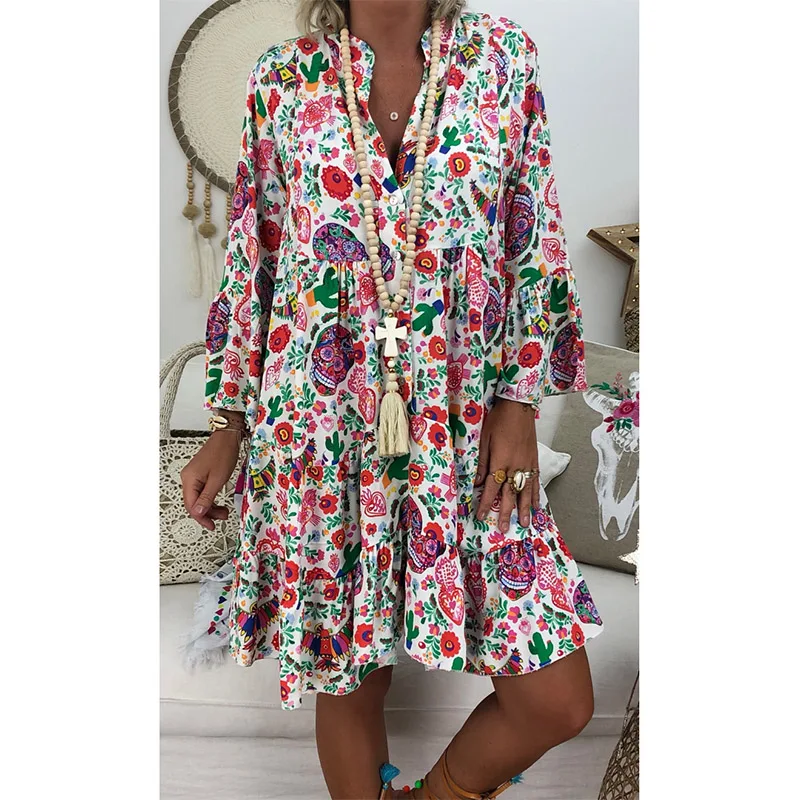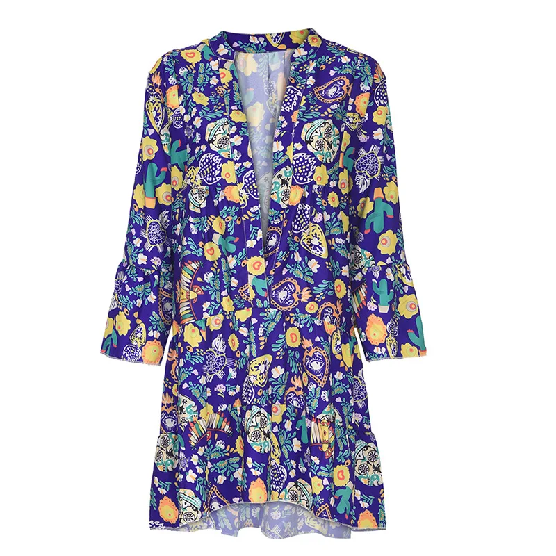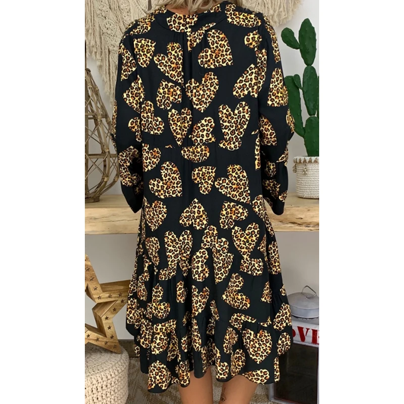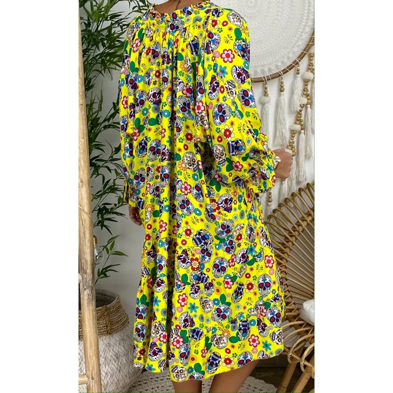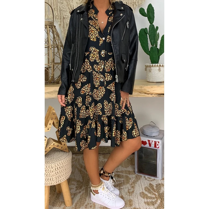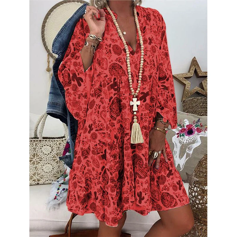 Осенние модные новые платья с V-образным вырезом и принтом, повседневные платья на пуговицах, свободные платья средней длины, элегантная уличная одежда, женские платья для вечеринок
