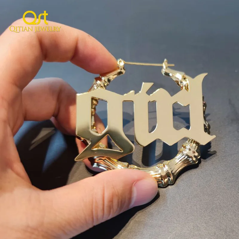 30 мм-100 мм на заказ Бамбук Серьги-кольца на заказ именные серьги в БАМБУКОВОМ стиле индивидуальные серьги с эффектными словами хип-хоп сексуальные