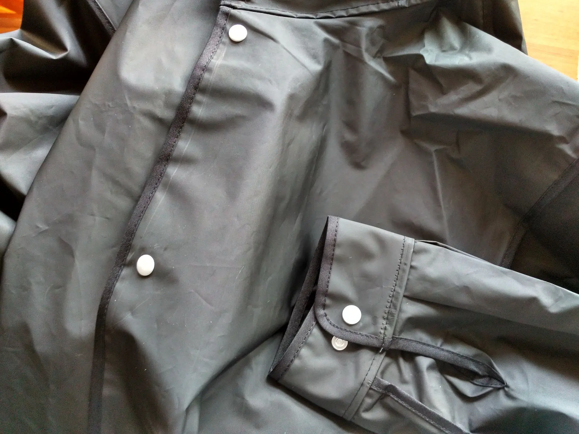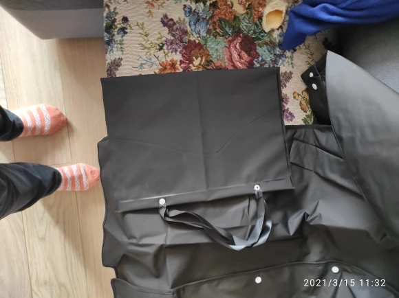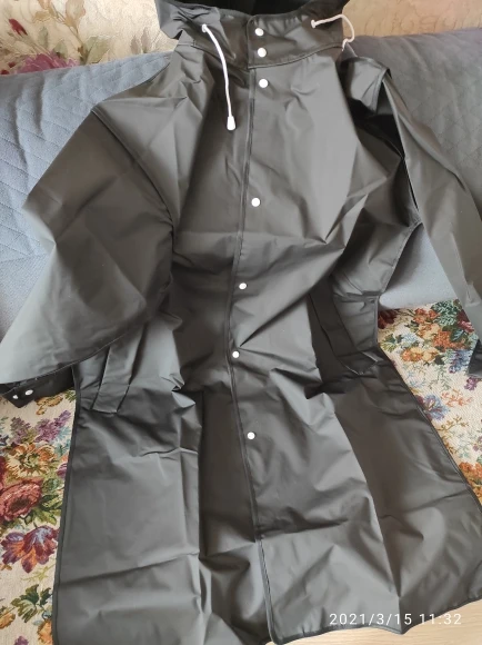 Классная вещь. Так и не понял - прорезиненная ткань или какой-то вид плотного полиэтилена. Брал XL - на 1.75 роста и 75 кг веса - вообще как влитой по рукавам. Можно и на летнюю одежду и на зимнюю, если не шуба... В Украину заехал с "Новая почта". Продавец отправил 18.02 - приехало 02.03 - отличный результат. Продавцу спасибо.