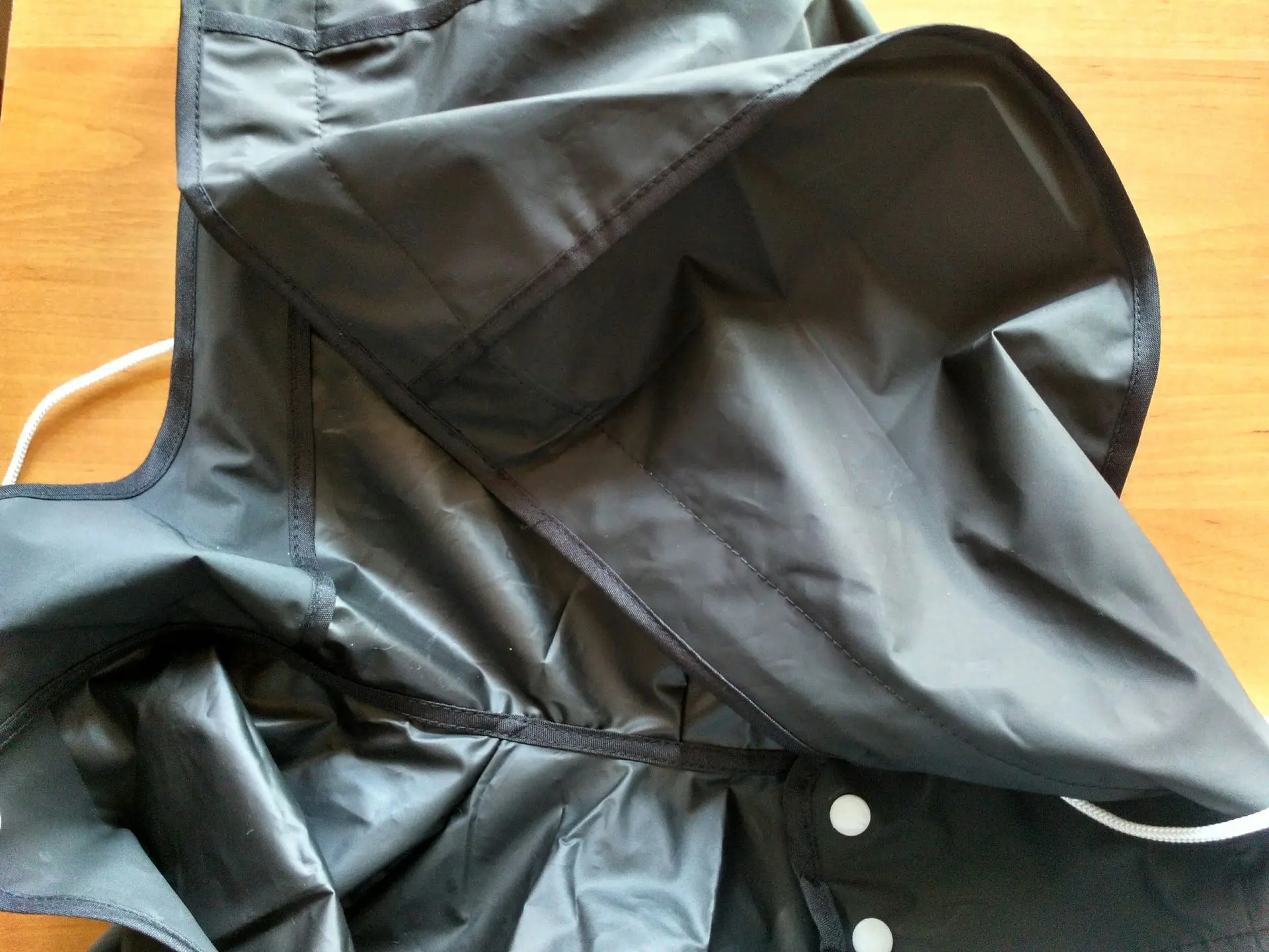Пришёл товар.Пикольный плащь.На меня сел впрору. Размеры работают. Наконечники на шнурках сразу заменил на чёрные,Сами шнурки чуть уоротил и вставил фиксаторы )) Ждём сезона дождей и грибов ))