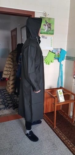 Приятный материал... Легкий дождевик и хорошо Простроченный. Отличное качество. При заказе на рост XXXL 180 см длина пальто составляет 1/4 от лодыжек до колен. Хотел длинный дождевик, чтобы прикрыть штаны во время прогулок. Очень вместительный, чтобы добавить куртку внутрь, в холодную погоду. Доставка в Канаду занимает 17 дней. Доставка очень быстрая. Оплатите дополнительно для доставки с помощью Aliexpress Shipping. Рекомендовать этот продавец другим покупателям.