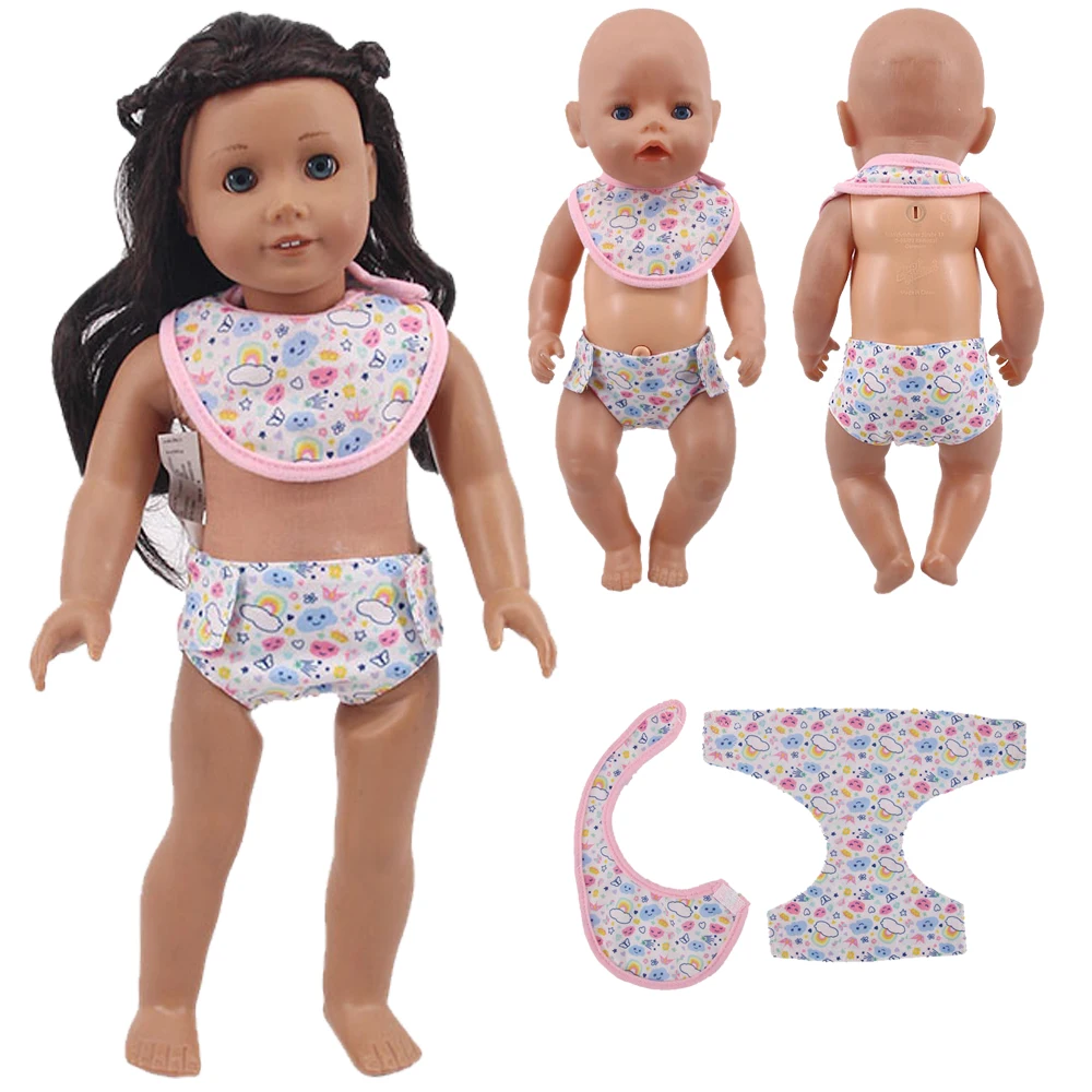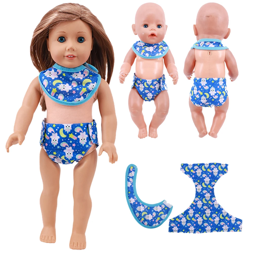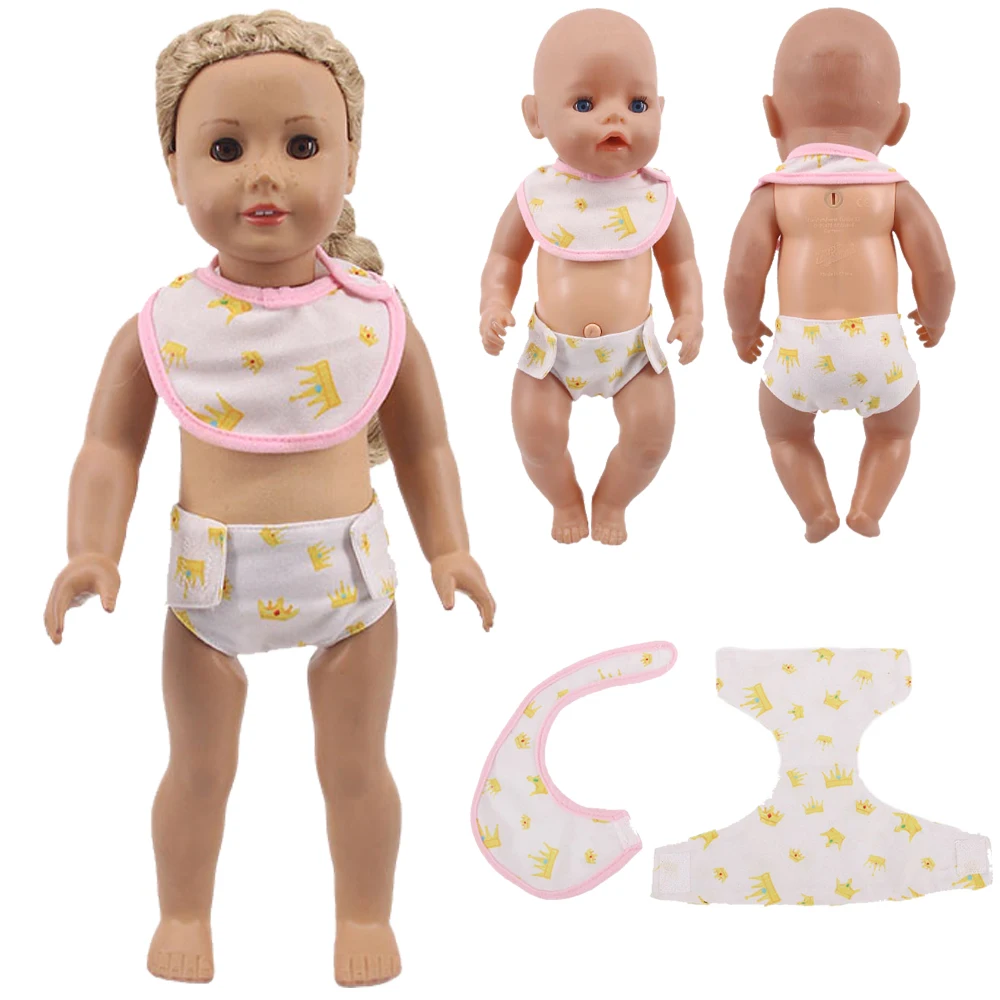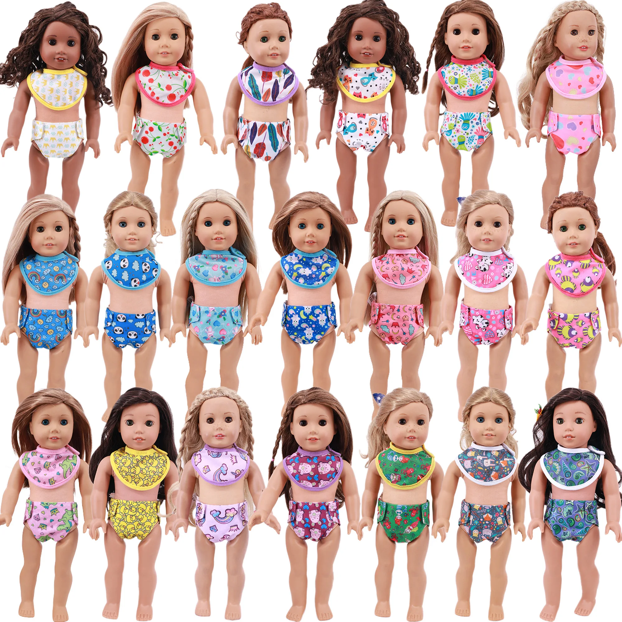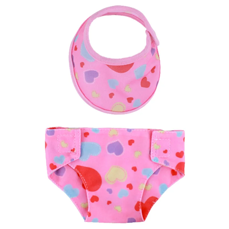 Кукольные подгузники, милое нижнее белье, 2 шт.компл., трусики на липучке + нагрудники для 18-дюймовых американских фотографий и 43 см, детская игрушка-Реборн, кукольная одежда
