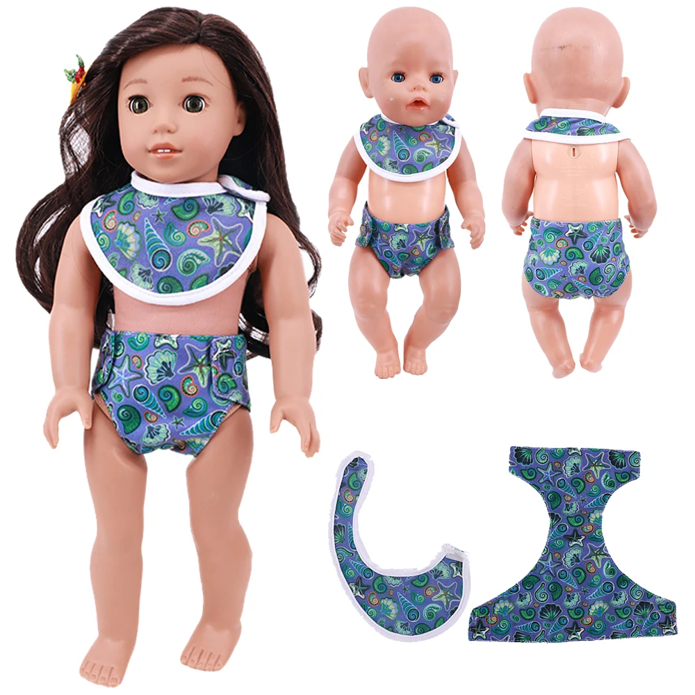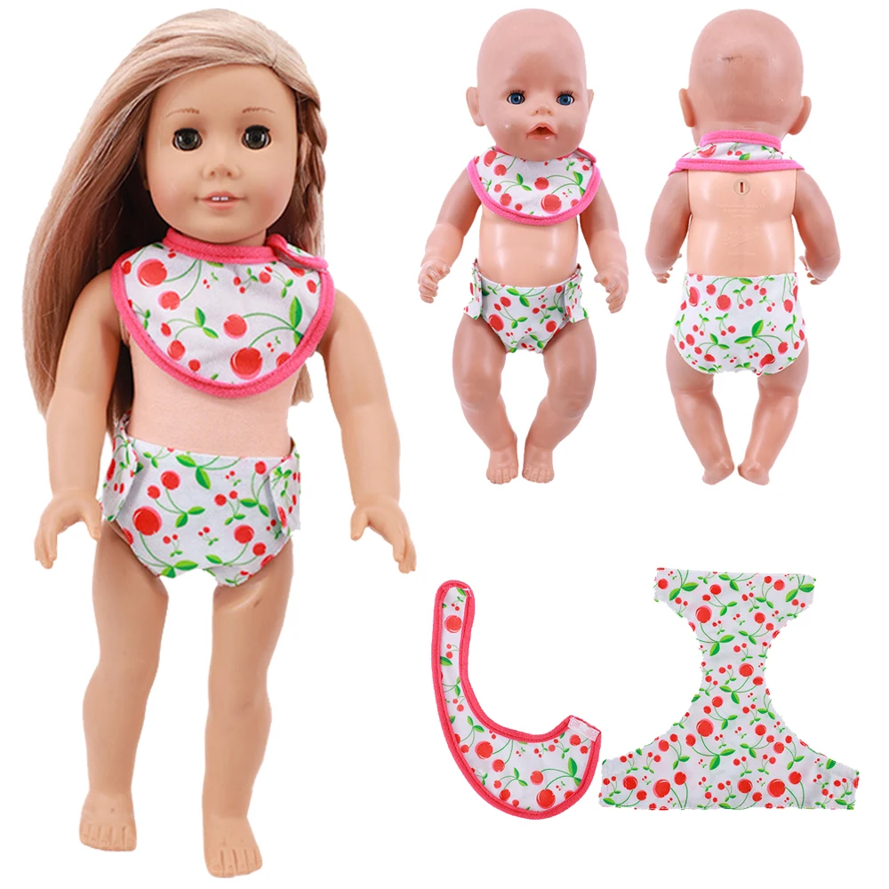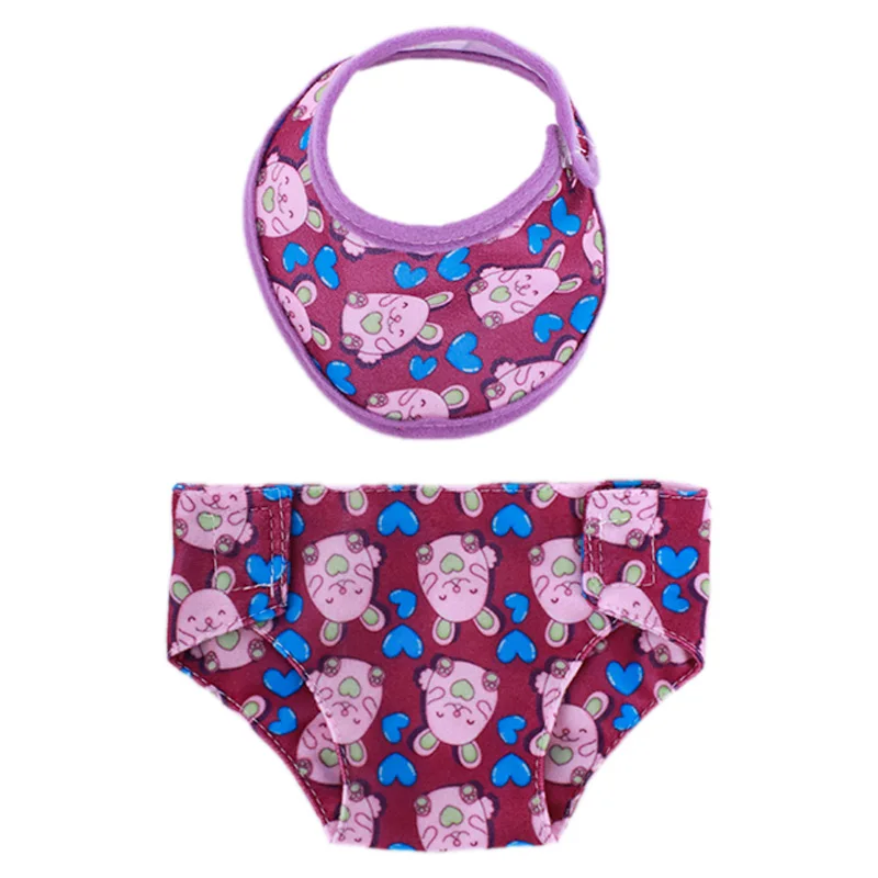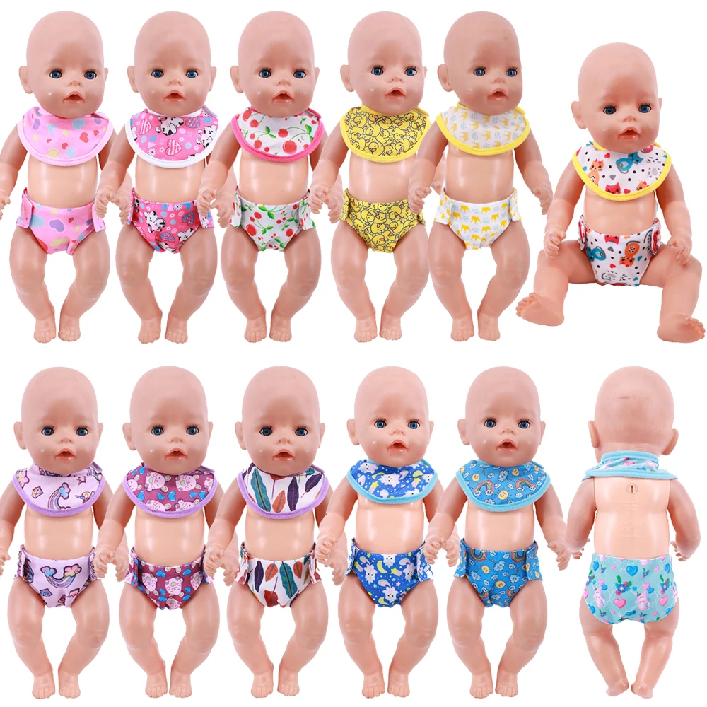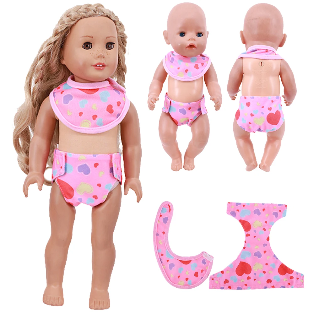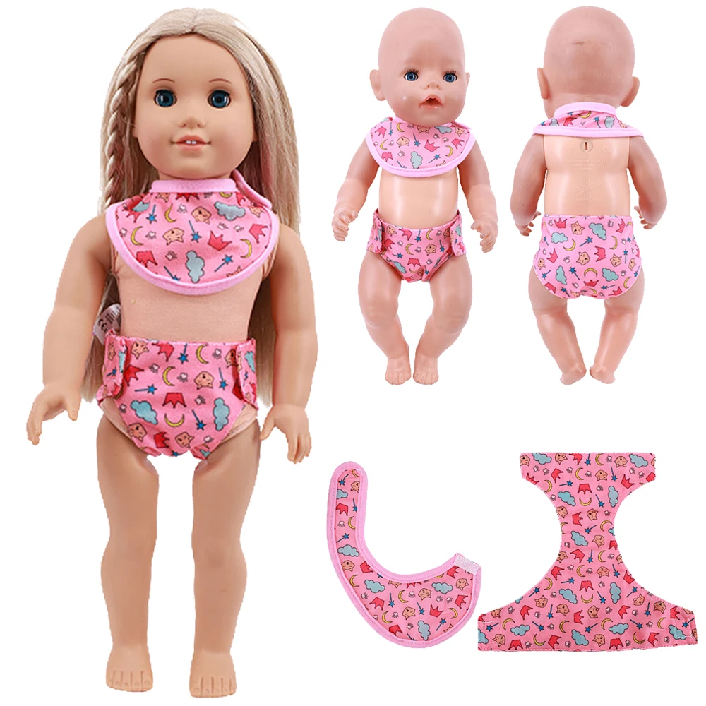 Кукольные подгузники, милое нижнее белье, 2 шт.компл., трусики на липучке + нагрудники для 18-дюймовых американских фотографий и 43 см, детская игрушка-Реборн, кукольная одежда