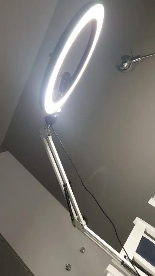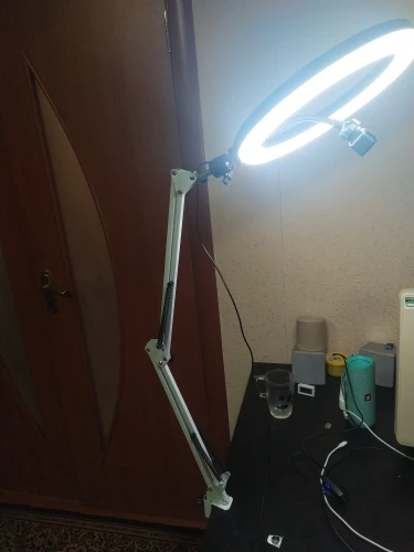Брала для сьемки мастерклассов сверху. Лампа очень тяжёлая для этого держателя(26см), под наклоном крепления не выдерживают, пришлось лампу снять. Без лампы все хорошо, пользоваться удобно. А лампу пришлось крепить на отдельную конструкцию.