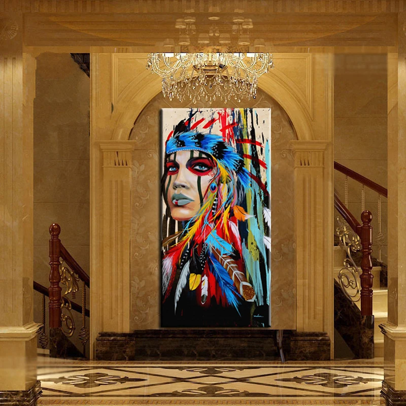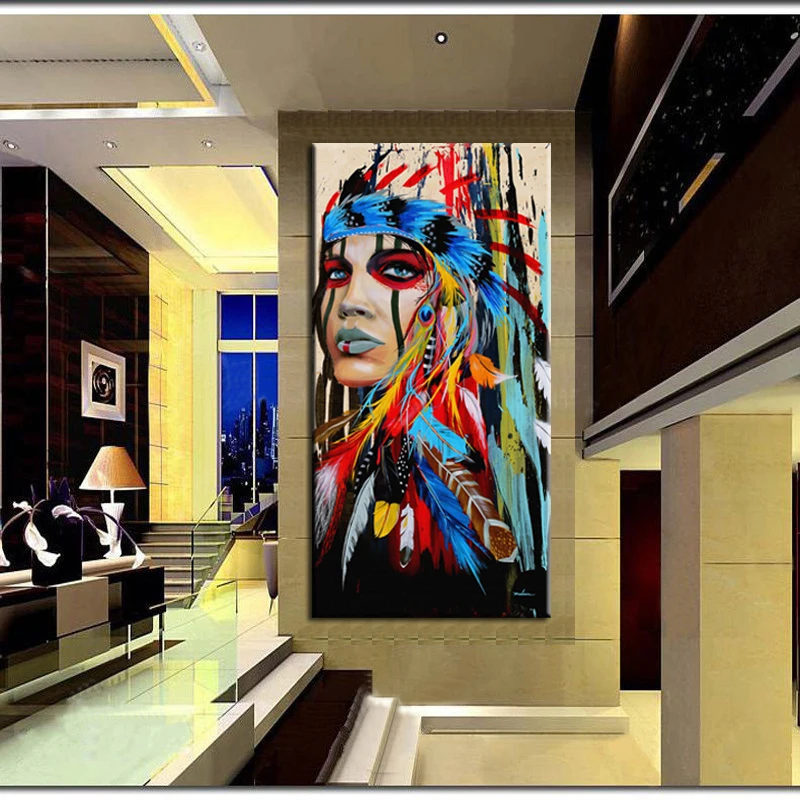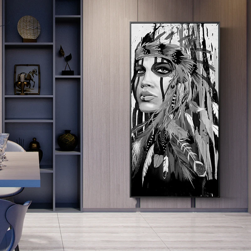 Портрет акварелью, холст, настенные картины для гостиной, индийская женщина, пернатая картина гордости, домашний декор, напечатанный без рамки