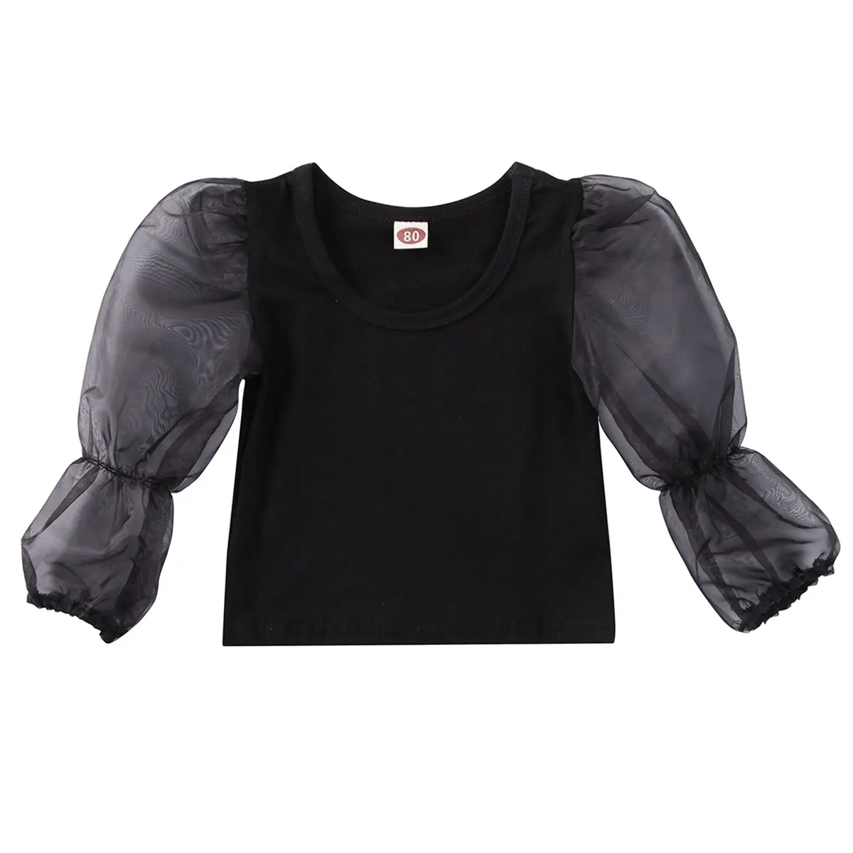 Pudcoco, 2020, модные летние топы для маленьких девочек, укороченный топ с длинными рукавами-фонариками, повседневные рубашки для малышей, однотонная блузка с круглым вырезом, От 6 месяцев до 5 лет