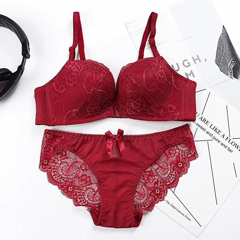 Сексуальный кружевной пуш-ап бюстгальтеры, комплект женского нижнего белья, новая мода ультра-тонкий комплект нижнего белья бюстгальтер с застежкой спереди комплект нижнего белья