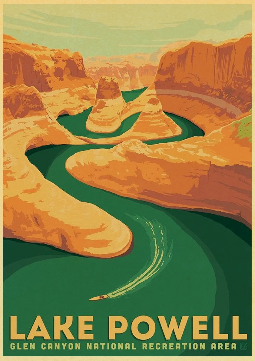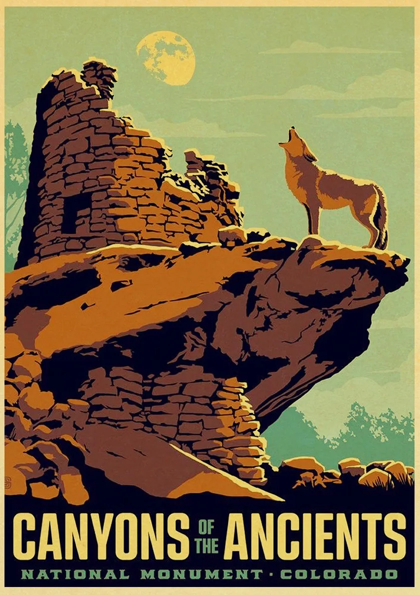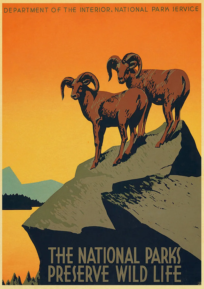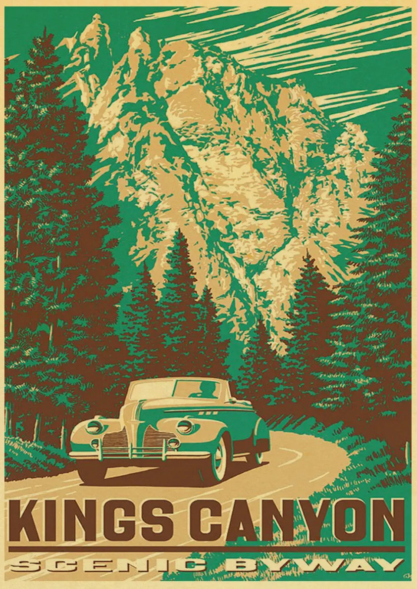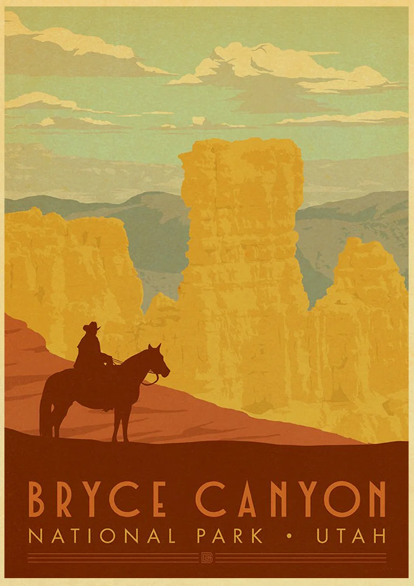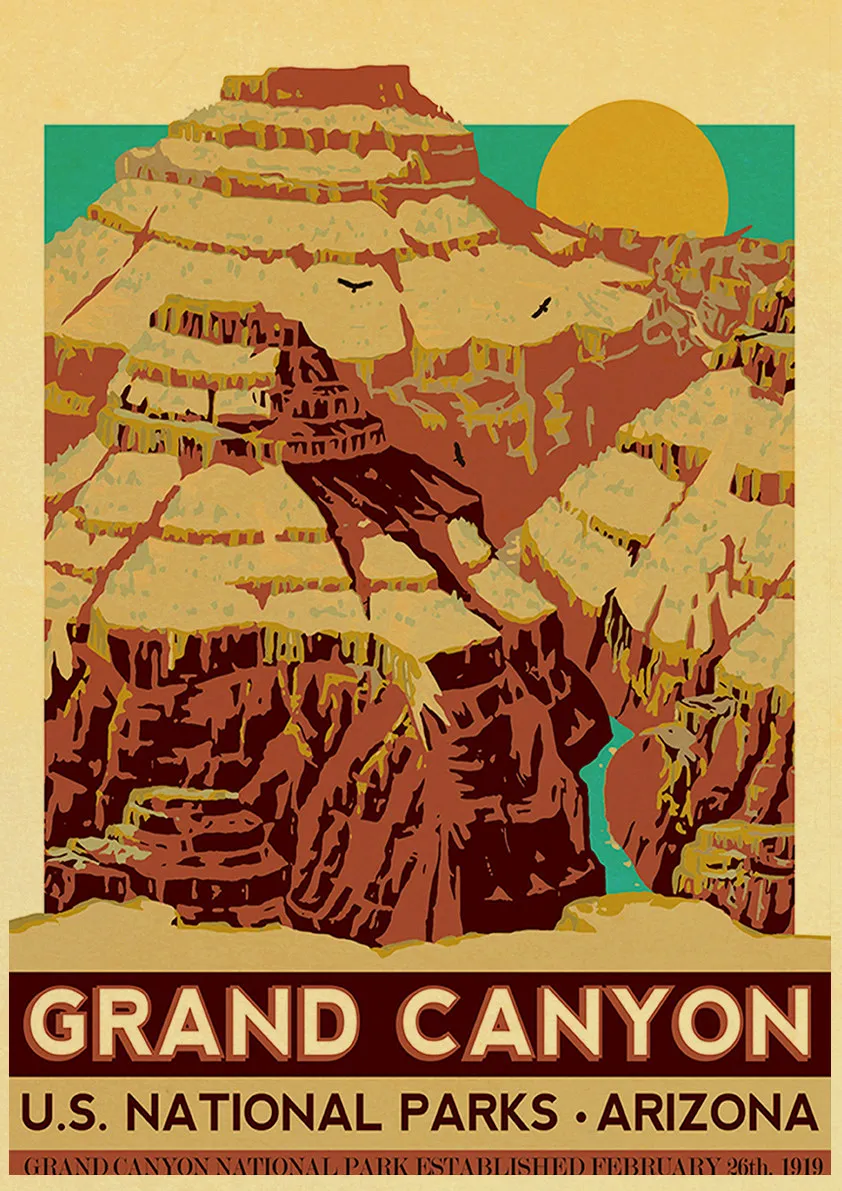 Винтаж плакат известный национальный парк пейзаж живопись холст нас...