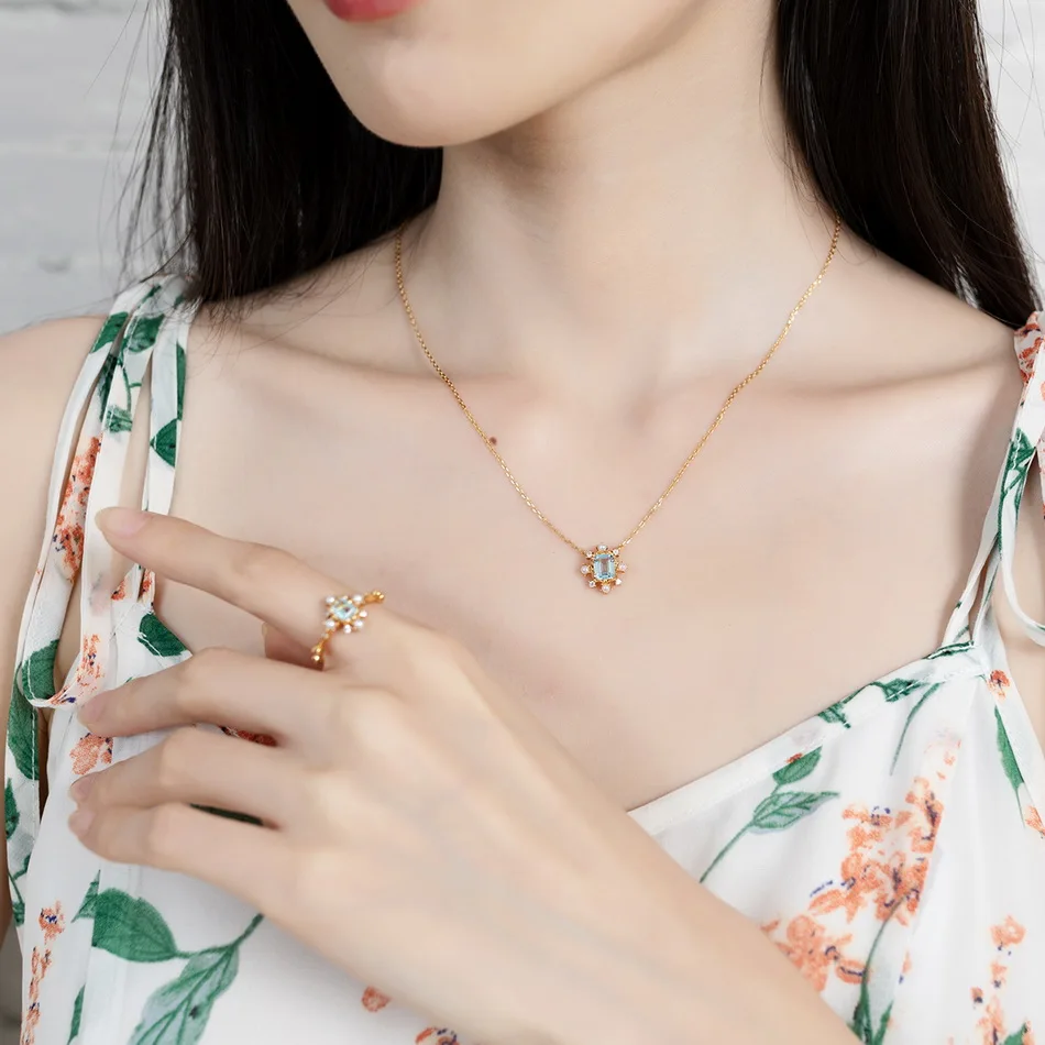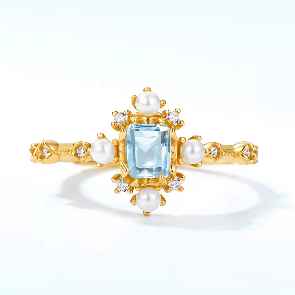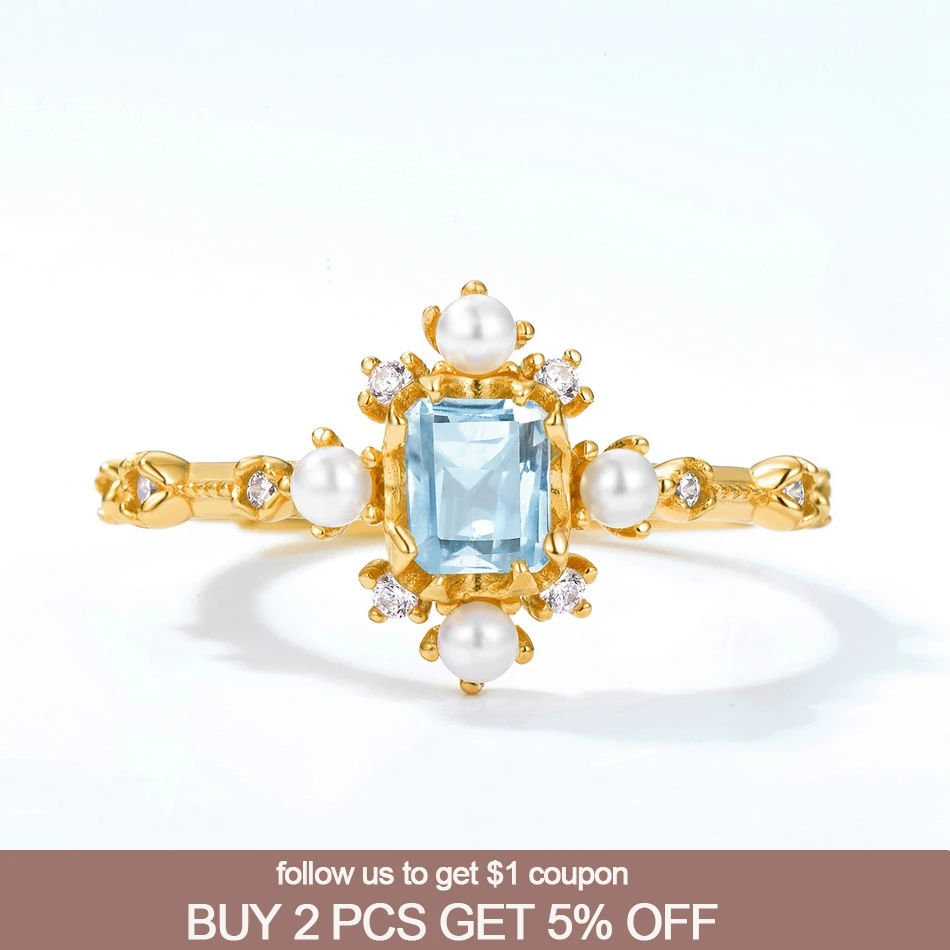 Женские кольца ALLNOEL, одноцветные кольца из 925 пробы серебра, 100% натуральный небесно-голубой топаз, перламутровый Циркон ручной работы, регулируемые кольца для помолвки