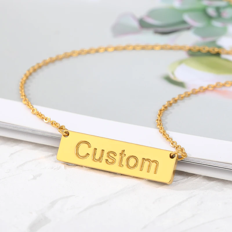 Именная табличка ювелирные изделия BFF Позолоченные 30*8 мм бар ожерелье с персонализированным именем на заказ инициальные римские цифры ожерелье-чокер ожерелье женский подарок