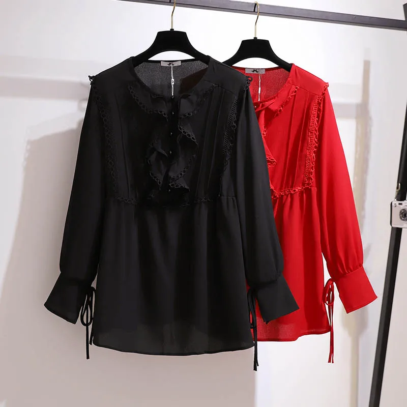 Женская шифоновая рубашка с длинным рукавом и круглым вырезом, 150 кг