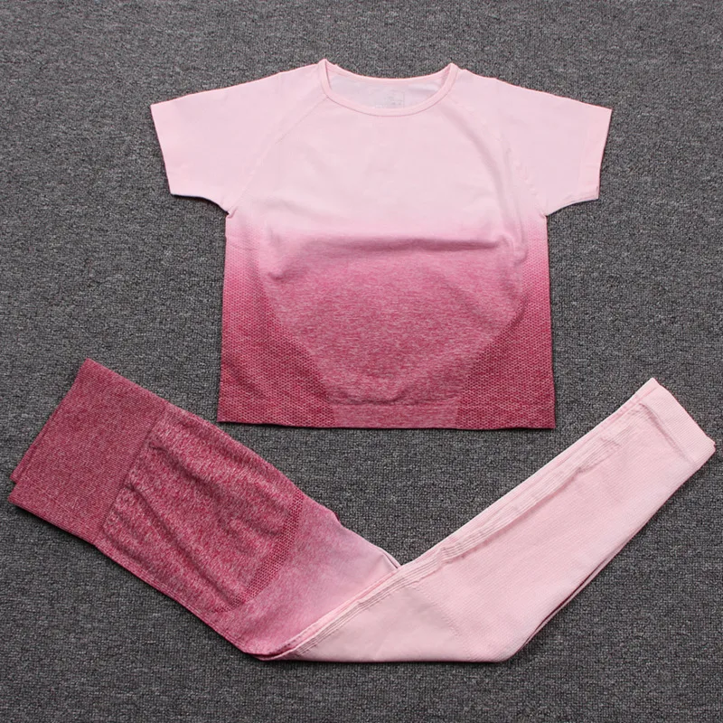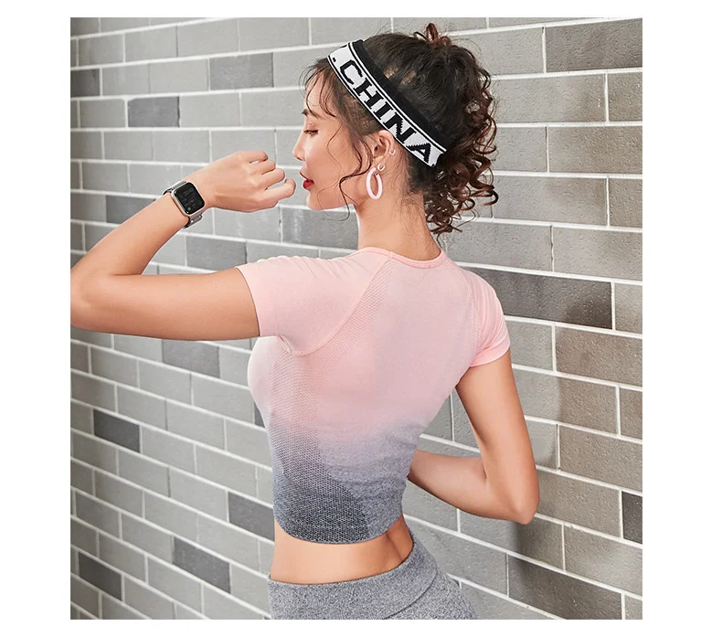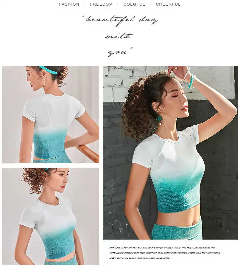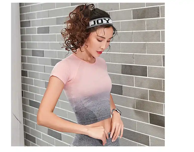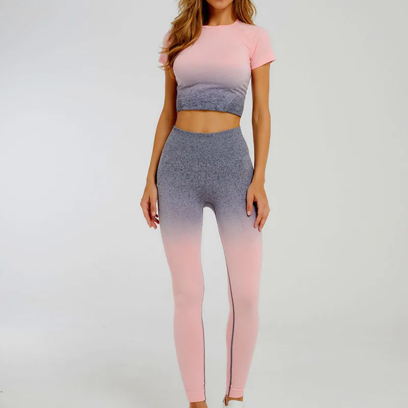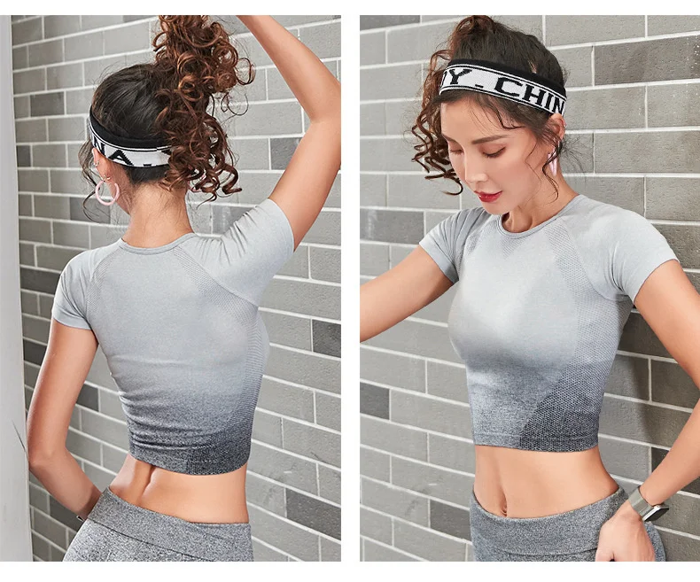 Женский комплект для йоги, бесшовный спортивный костюм, леггинсы с высокой талией, футболка с коротким рукавом, укороченный топ, костюм для фитнеса, тренировок