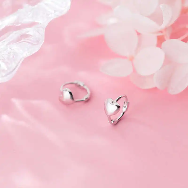 Женские серьги-кольца в вечерние сердца из серебра 925 пробы