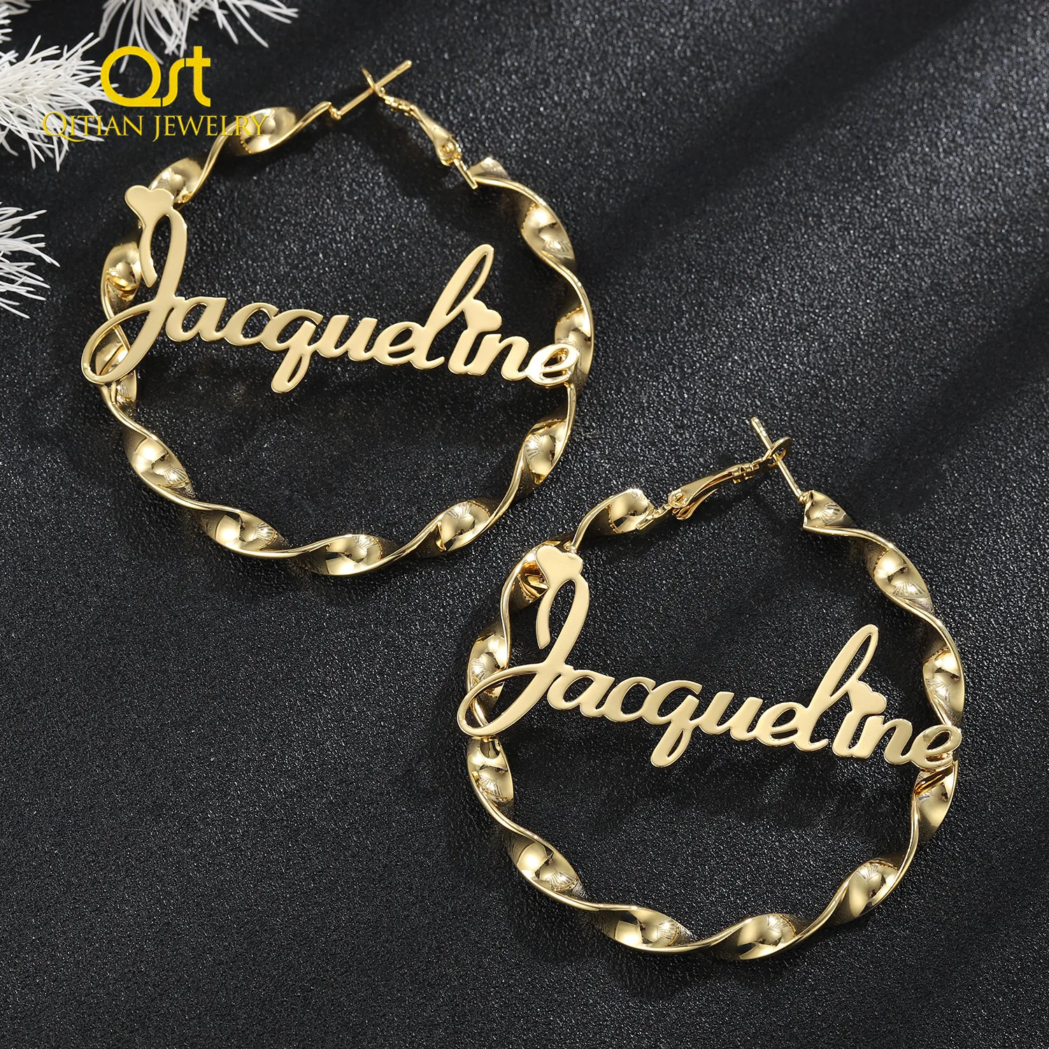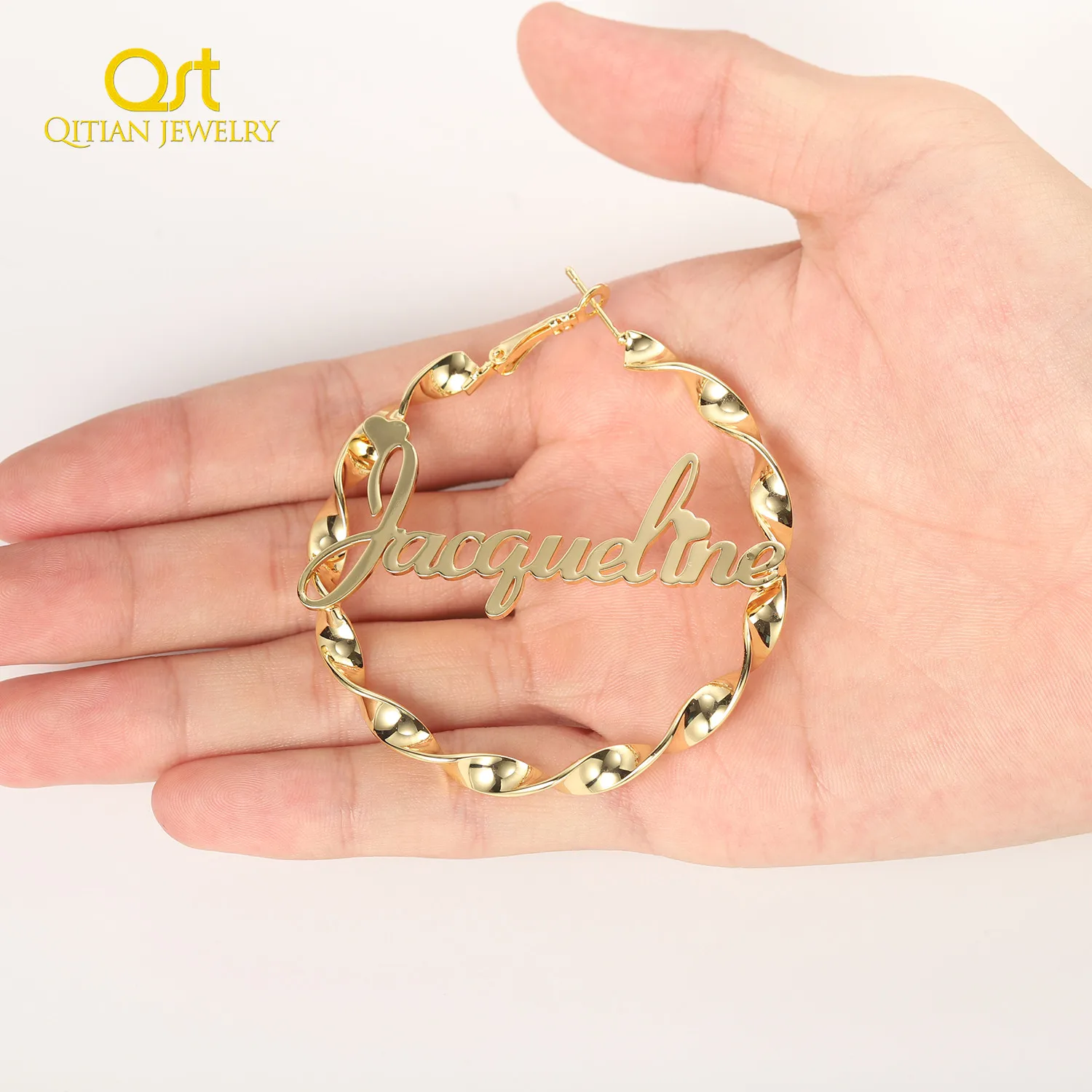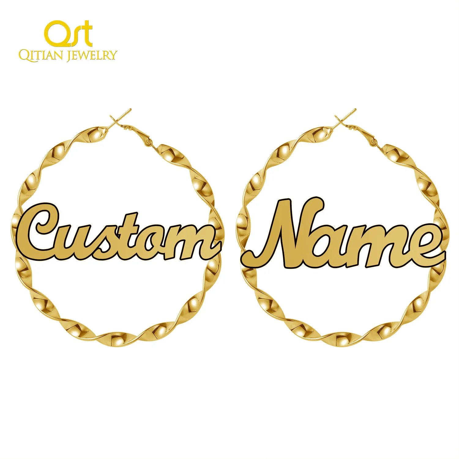 Серьги-кольца под заказ, изящные витые украшения в стиле хип-хоп, 45-85 мм, с надписью на заказ