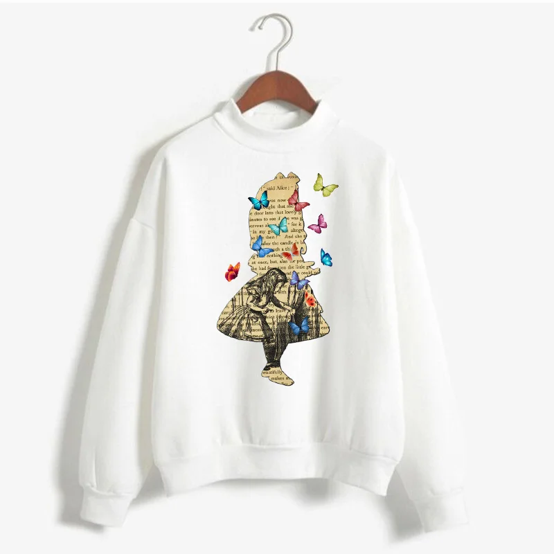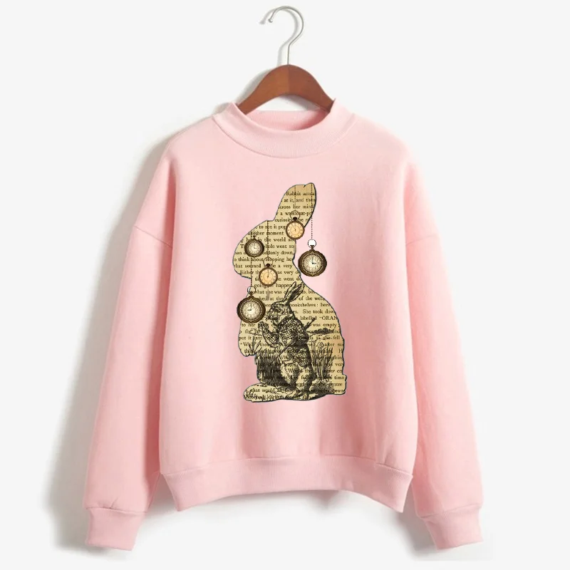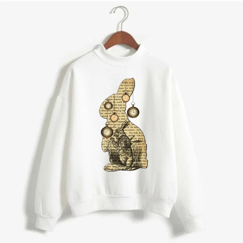 Женский пуловер с принтом Алисы в стране чудес, Женский свитшот в стиле Харадзюку с изображением кролика и девушек, уличная одежда, топы