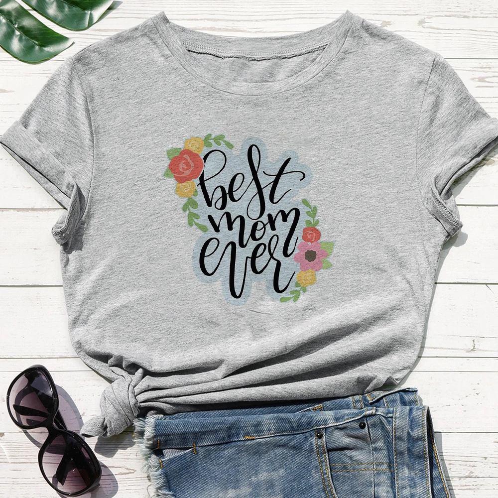 Женская уличная одежда в стиле панк, женская рубашка в стиле хип-хоп, футболка с надписью Best Mom Ever, свободная дешевая футболка с круглым вырезом, белая, серая футболка