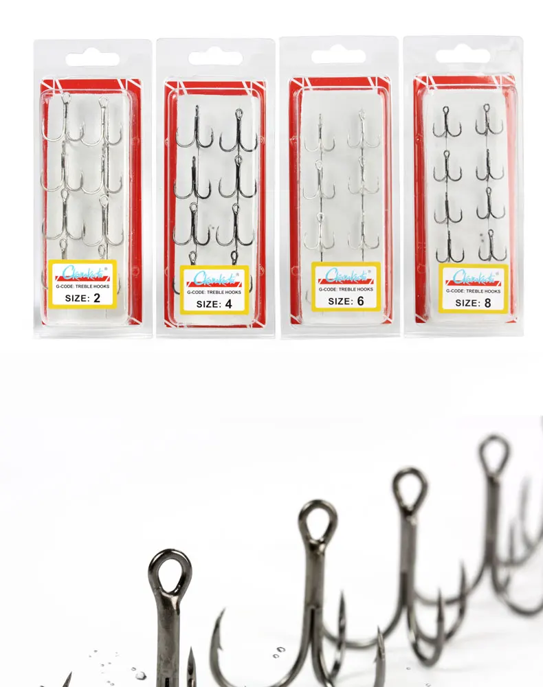 Рыболовные крючки, 8 шт., тройной, складной, из углеродистой стали, морской окунь, 1 #, 2 #, 4 #, 6 #, 8 #, 10 #